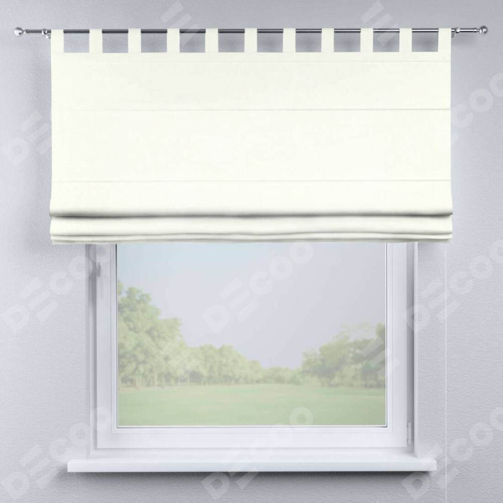 Римская штора производителя «Cortin», используется для проёма, пошита из ткани канвас молочный, артикул ткани v-93. Данная модель пошита на петлях, комплектуется на выбор круглым карнизом и подходит для монтажа на стену. Римская штора на петлях имеет простую систему регулировки высоты, отличительным преимуществом данной модели является простой способ монтажа. Достаточно повесить ее на трубу и штора готова!