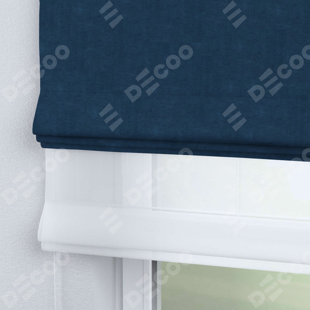 Римская штора день-ночь производителя «Cortin», используется для проёма, пошита из двух полотен, с лицевой стороны канвас синий артикул v-573, вторая ткань тюль (по стандарту комплектуется тюль белого цвета артикул V-01). Имеет универсальный механизм и подходит для монтажа: на потолок, на стену и в нишу.