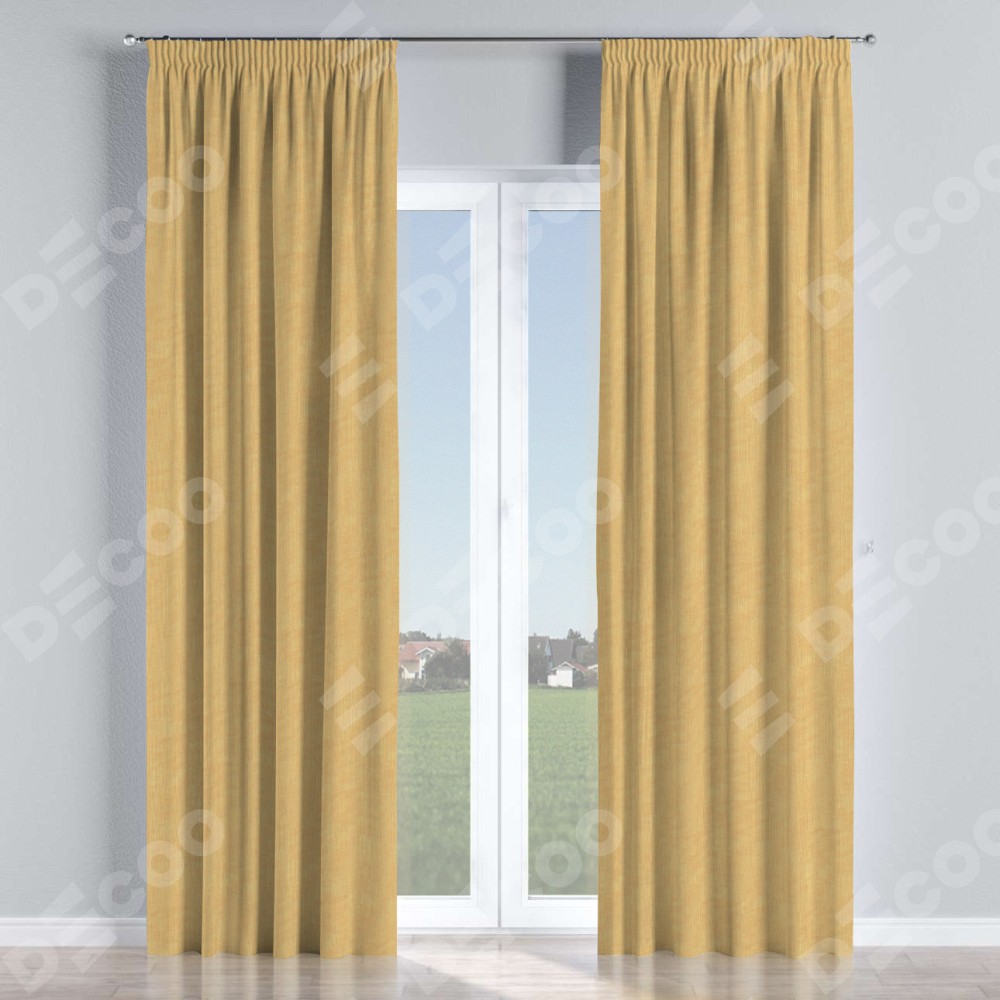 Комплект прямых штор, от производителя «Cortin», пошиты из ткани канвас абрикосовый, артикул ткани v-448. С изнаночной стороны в верхней части штор пристрачивается шторная лента с декоративными складками «Карандаш». Для создания элегантных складок прямые шторы шьются по стандарту с коэффициентом 1:2 (на 100 см. ширины проёма 200 см. ширины ткани).