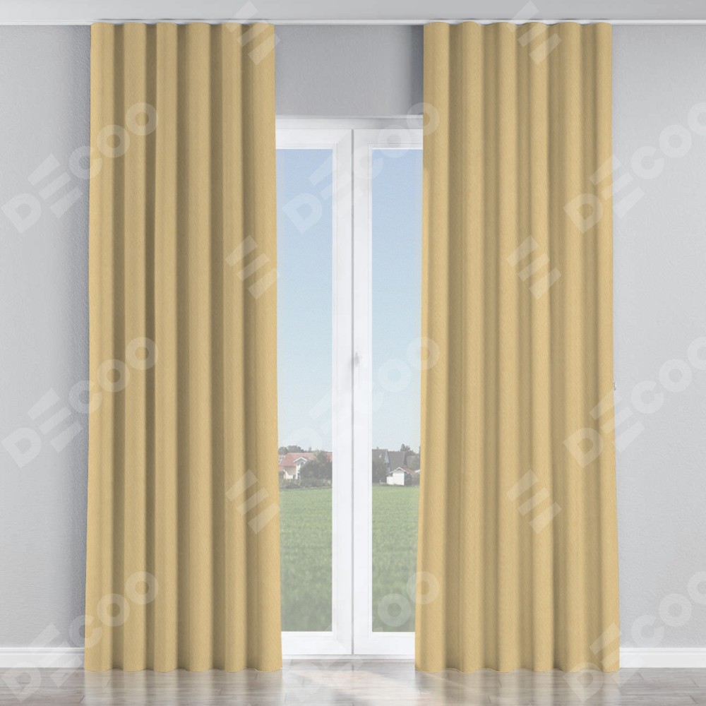 Комплект прямых штор, от производителя «Cortin», пошиты из ткани канвас бежевый, артикул ткани v-96. С изнаночной стороны в верхней части штор пристрачивается шторная лента с декоративными складками «Волна». Для создания элегантных складок прямые шторы шьются по стандарту с коэффициентом 1:2 (на 100 см. ширины проёма 200 см. ширины ткани).
