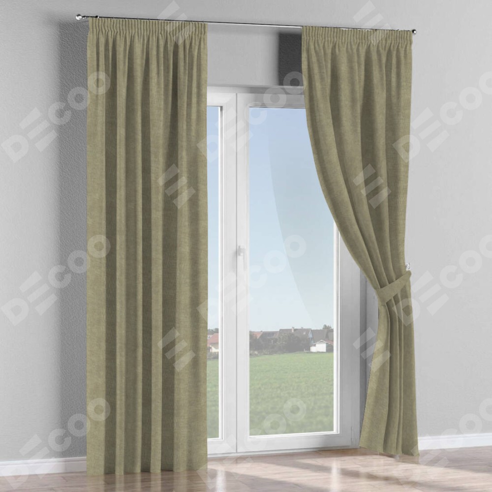 Комплект прямых штор, от производителя «Cortin», пошиты из ткани канвас капучино, артикул ткани v-211. С изнаночной стороны в верхней части штор пристрачивается шторная лента с декоративными складками «Карандаш». Для создания элегантных складок прямые шторы шьются по стандарту с коэффициентом 1:2 (на 100 см. ширины проёма 200 см. ширины ткани).