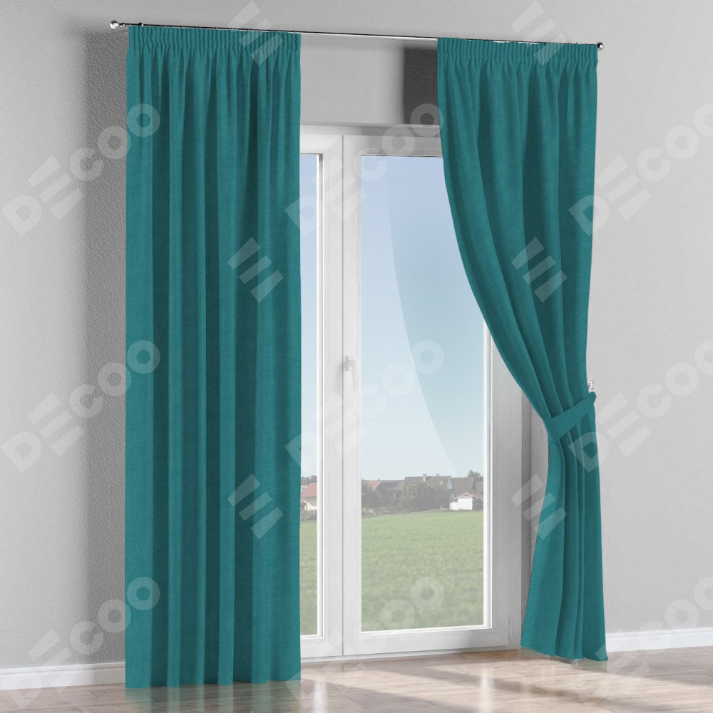 Комплект прямых штор, от производителя «Cortin», пошиты из ткани канвас ментоловый, артикул ткани v-114. С изнаночной стороны в верхней части штор пристрачивается шторная лента с декоративными складками «Карандаш». Для создания элегантных складок прямые шторы шьются по стандарту с коэффициентом 1:2 (на 100 см. ширины проёма 200 см. ширины ткани).