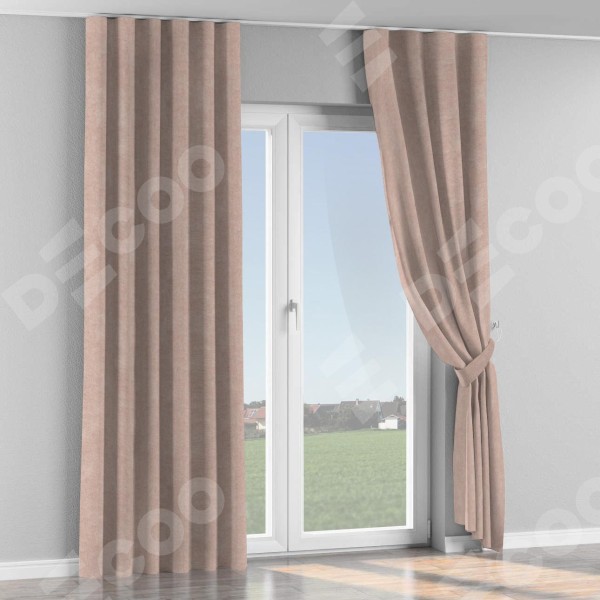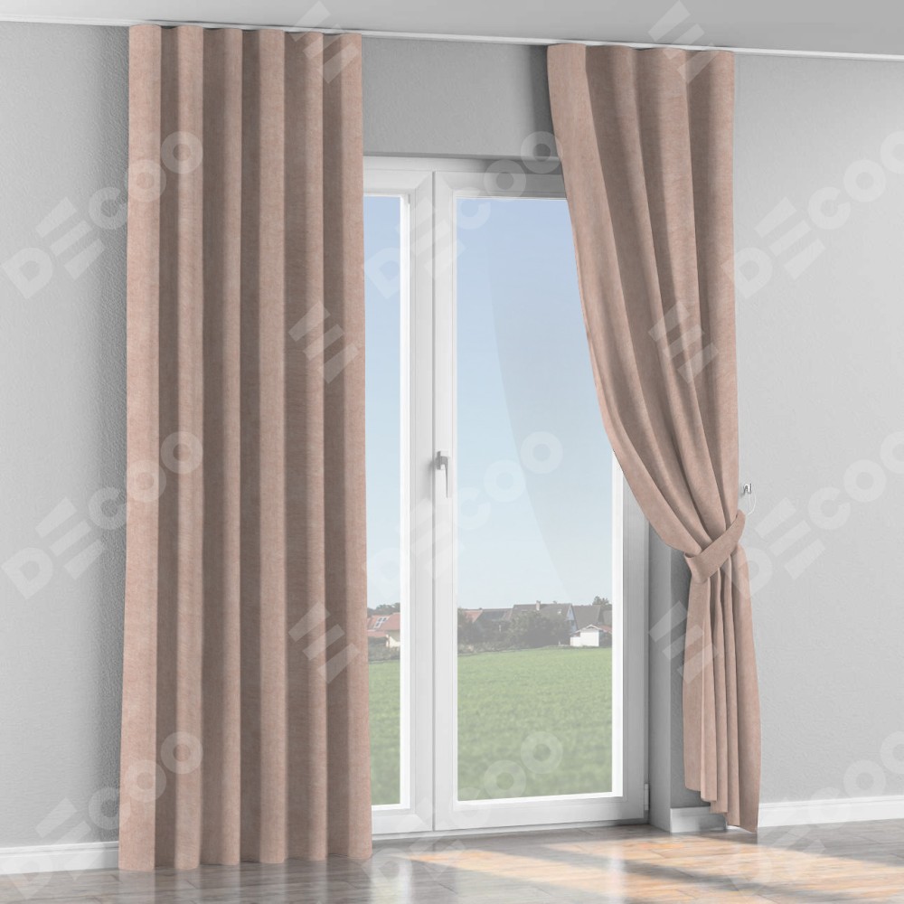Комплект прямых штор, от производителя «Cortin», пошиты из ткани канвас пудровый, артикул ткани v-35. С изнаночной стороны в верхней части штор пристрачивается шторная лента с декоративными складками «Волна». Для создания элегантных складок прямые шторы шьются по стандарту с коэффициентом 1:2 (на 100 см. ширины проёма 200 см. ширины ткани).