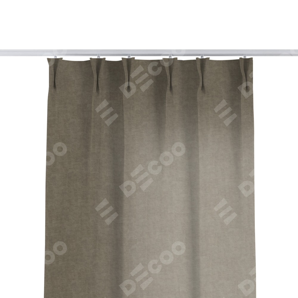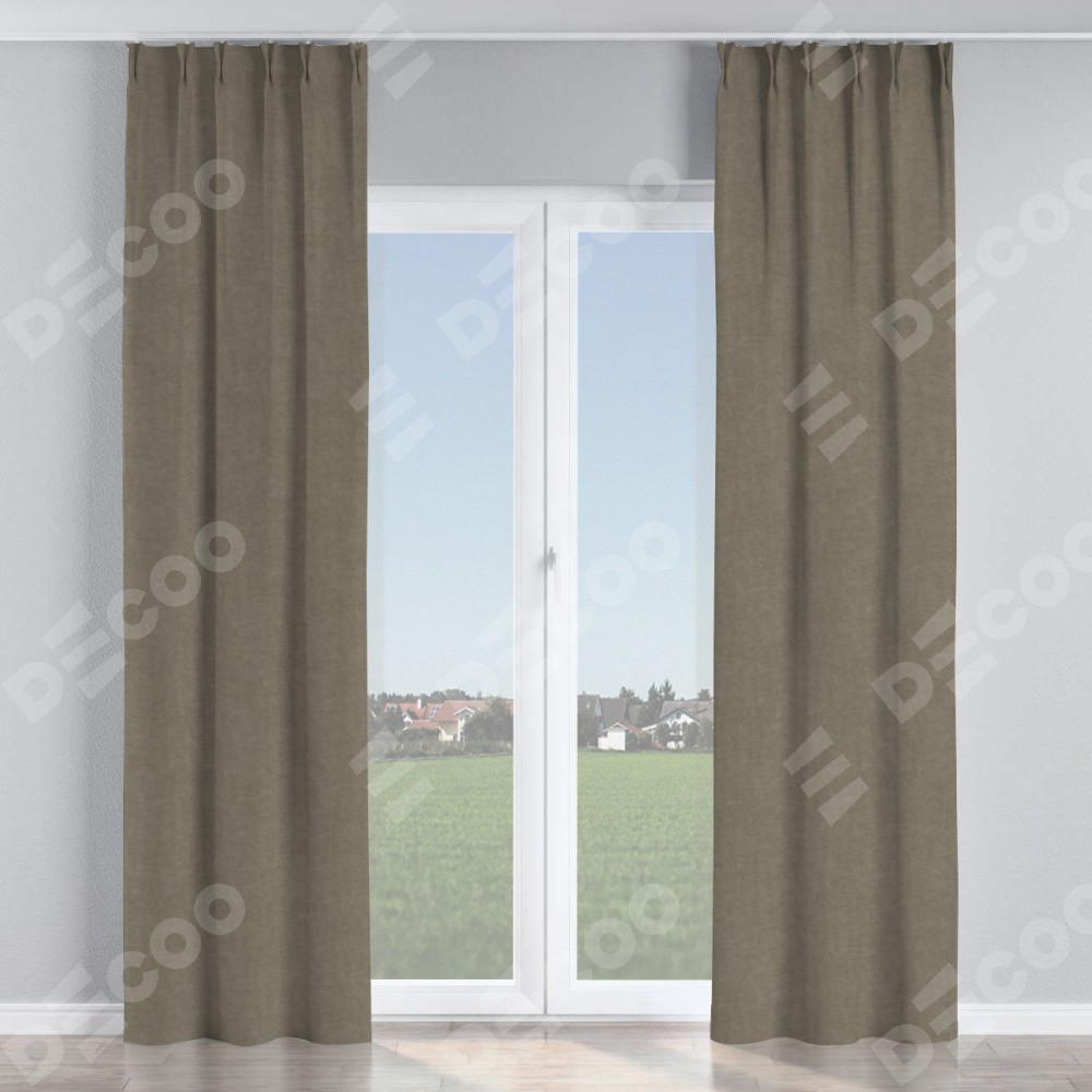 Комплект прямых штор, от производителя «Cortin», пошиты из ткани канвас серо-бежевый, артикул ткани v-224. С изнаночной стороны в верхней части штор пристрачивается шторная лента с декоративными складками «Кустик». Для создания элегантных складок прямые шторы шьются по стандарту с коэффициентом 1:2 (на 100 см. ширины проёма 200 см. ширины ткани).