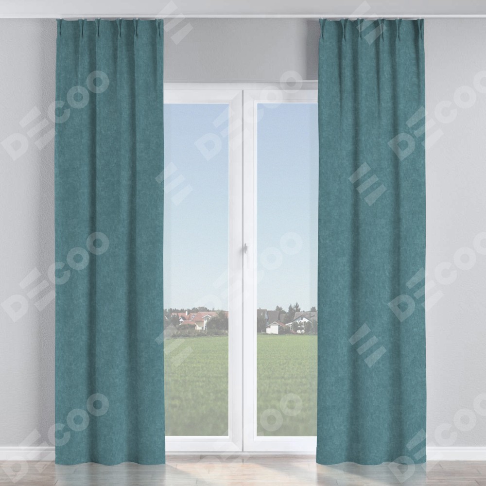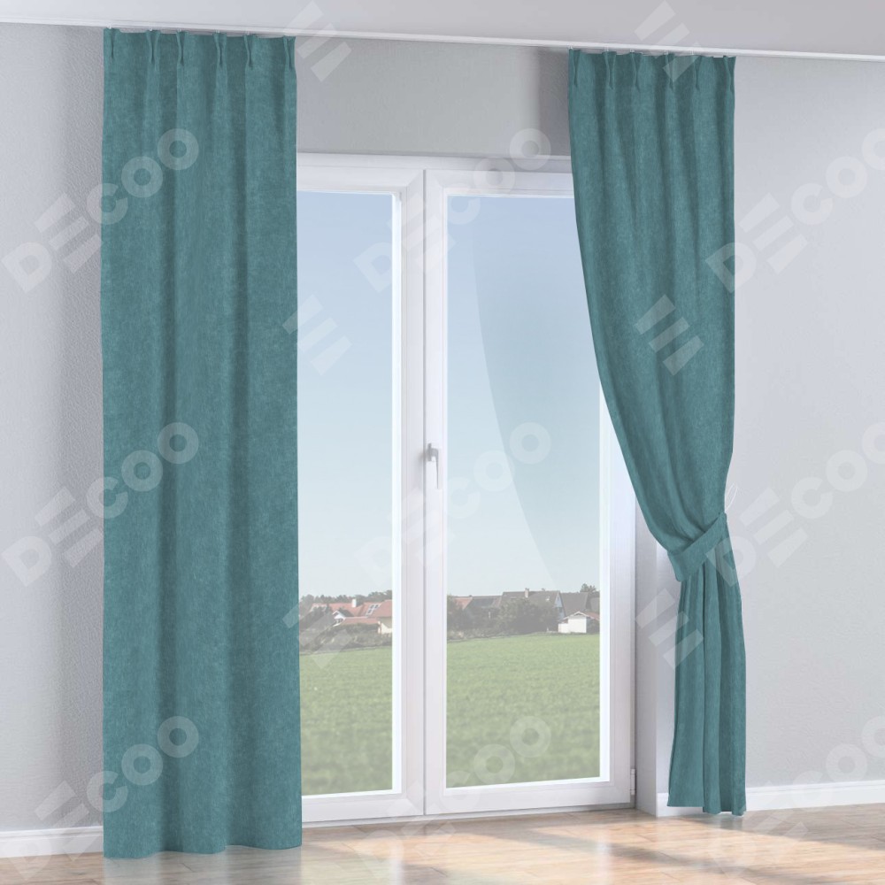 Комплект прямых штор, от производителя «Cortin», пошиты из ткани канвас серо-голубой, артикул ткани v-330. С изнаночной стороны в верхней части штор пристрачивается шторная лента с декоративными складками «Кустик». Для создания элегантных складок прямые шторы шьются по стандарту с коэффициентом 1:2 (на 100 см. ширины проёма 200 см. ширины ткани).