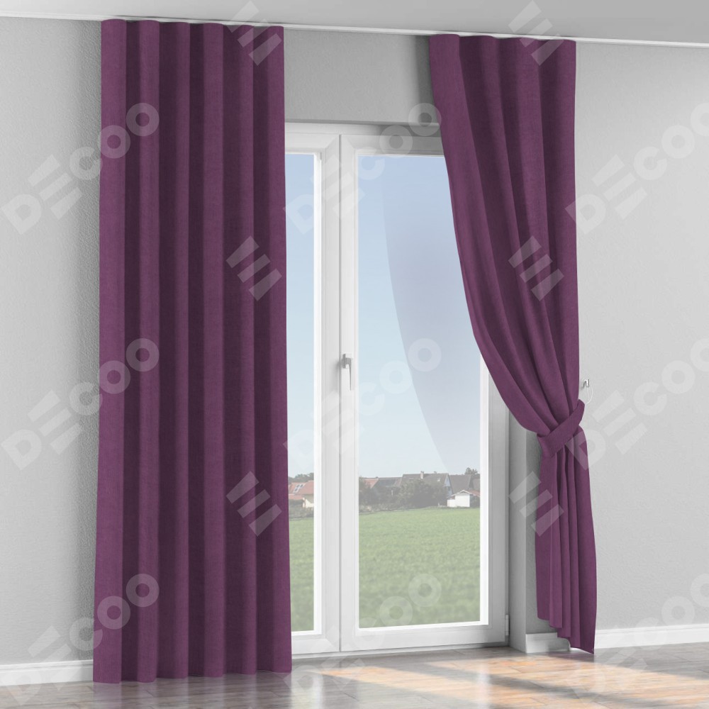 Комплект прямых штор, от производителя «Cortin», пошиты из ткани канвас сиреневый, артикул ткани v-98. С изнаночной стороны в верхней части штор пристрачивается шторная лента с декоративными складками «Волна». Для создания элегантных складок прямые шторы шьются по стандарту с коэффициентом 1:2 (на 100 см. ширины проёма 200 см. ширины ткани).