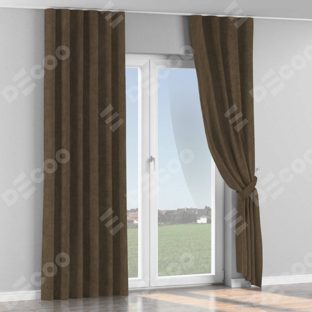 Комплект прямых штор, от производителя «Cortin», пошиты из ткани канвас шоколадный, артикул ткани v-193. С изнаночной стороны в верхней части штор пристрачивается шторная лента с декоративными складками «Волна». Для создания элегантных складок прямые шторы шьются по стандарту с коэффициентом 1:2 (на 100 см. ширины проёма 200 см. ширины ткани).
