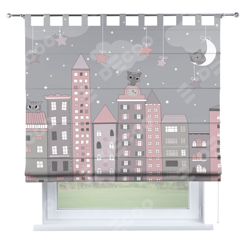 Римская штора производителя «Cortin», используется для проёма, пошита из ткани блэкаут с нанесением сублимационной печати «Вечерний город». Данная модель пошита на петлях, комплектуется на выбор круглым карнизом и подходит для монтажа на стену. Римская штора на петлях имеет простую систему регулировки высоты, отличительным преимуществом данной модели является простой способ монтажа. Достаточно повесить ее на трубу и штора готова!