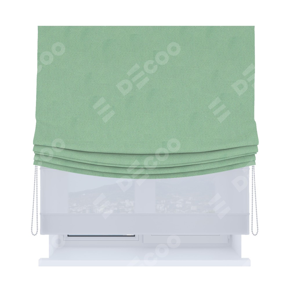 Римская штора «Кортин», блэкаут однотонный ментоловый, день-ночь с мягкими складками