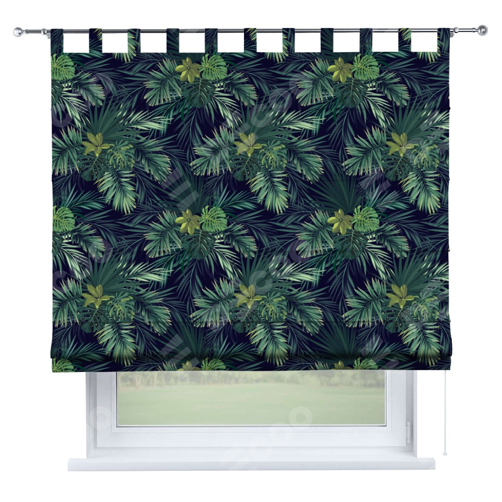 Римская штора производителя «Cortin», используется для проёма, пошита из ткани блэкаут с нанесением сублимационной печати «Пальмовые листья». Данная модель пошита на петлях, комплектуется на выбор круглым карнизом и подходит для монтажа на стену. Римская штора на петлях имеет простую систему регулировки высоты, отличительным преимуществом данной модели является простой способ монтажа. Достаточно повесить ее на трубу и штора готова!