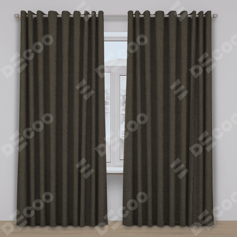 Шторы на люверсах ткань твид блэкаут, тёмно-коричневый