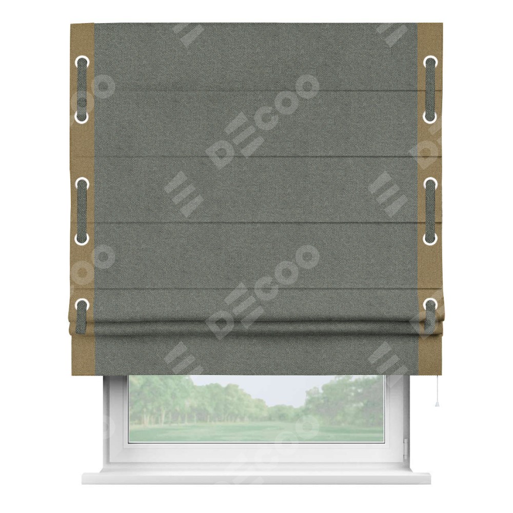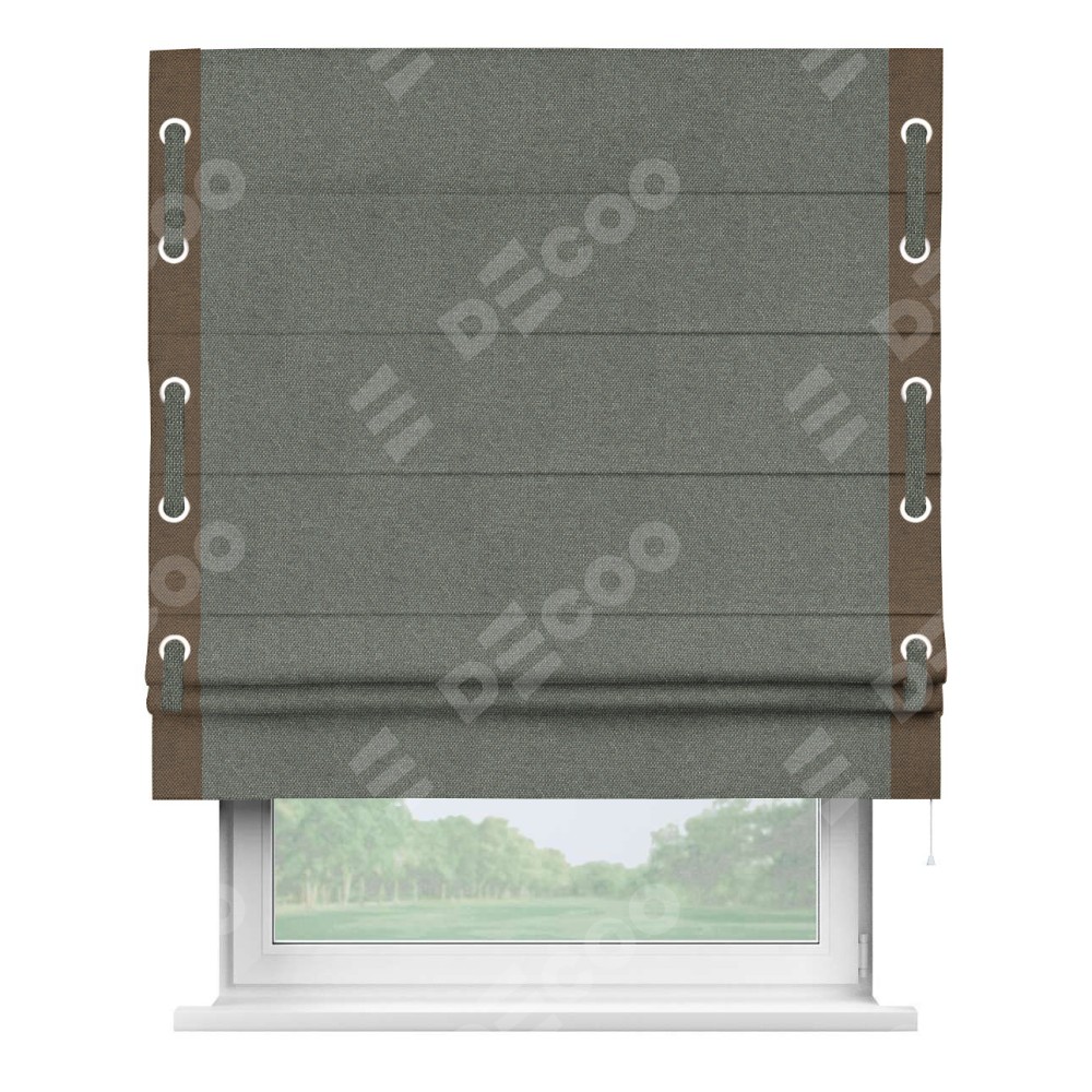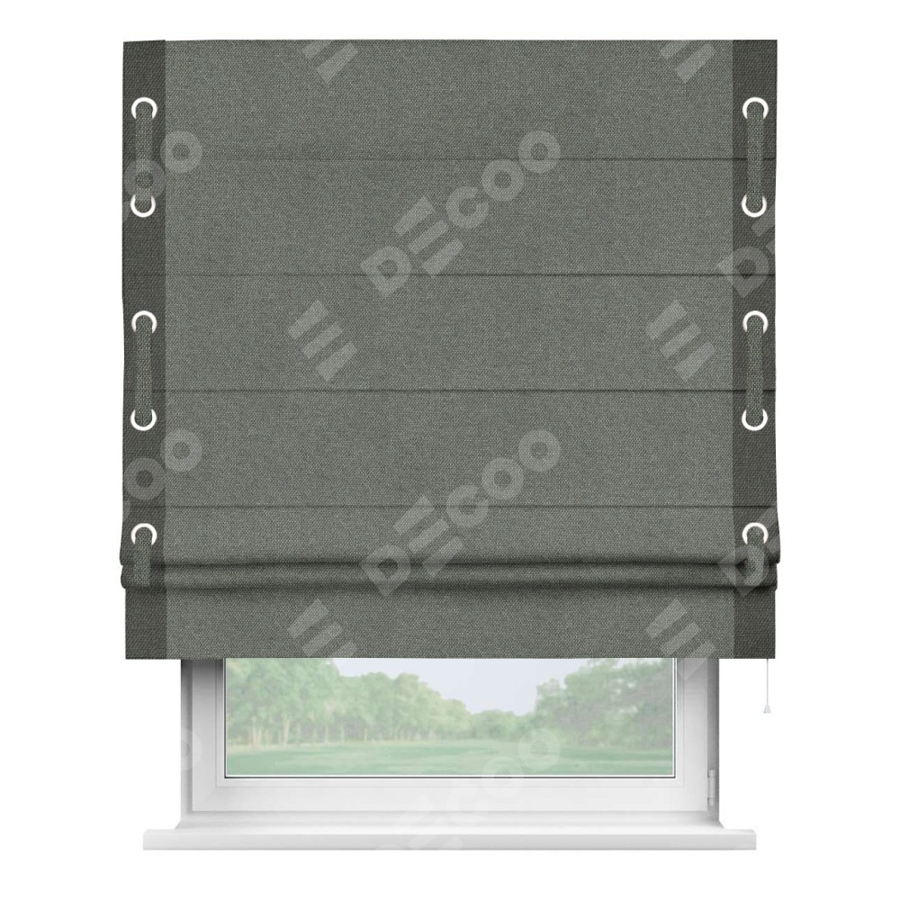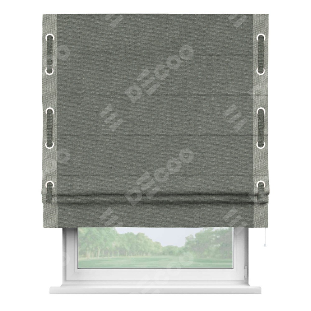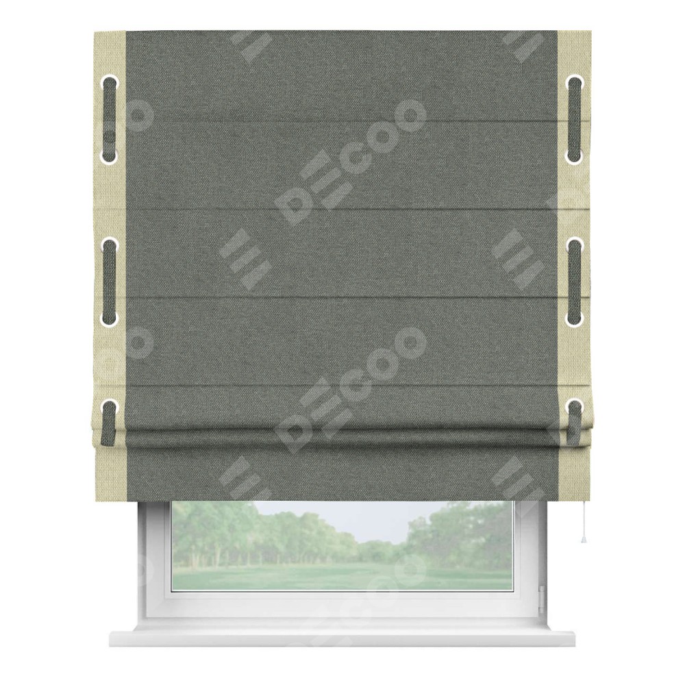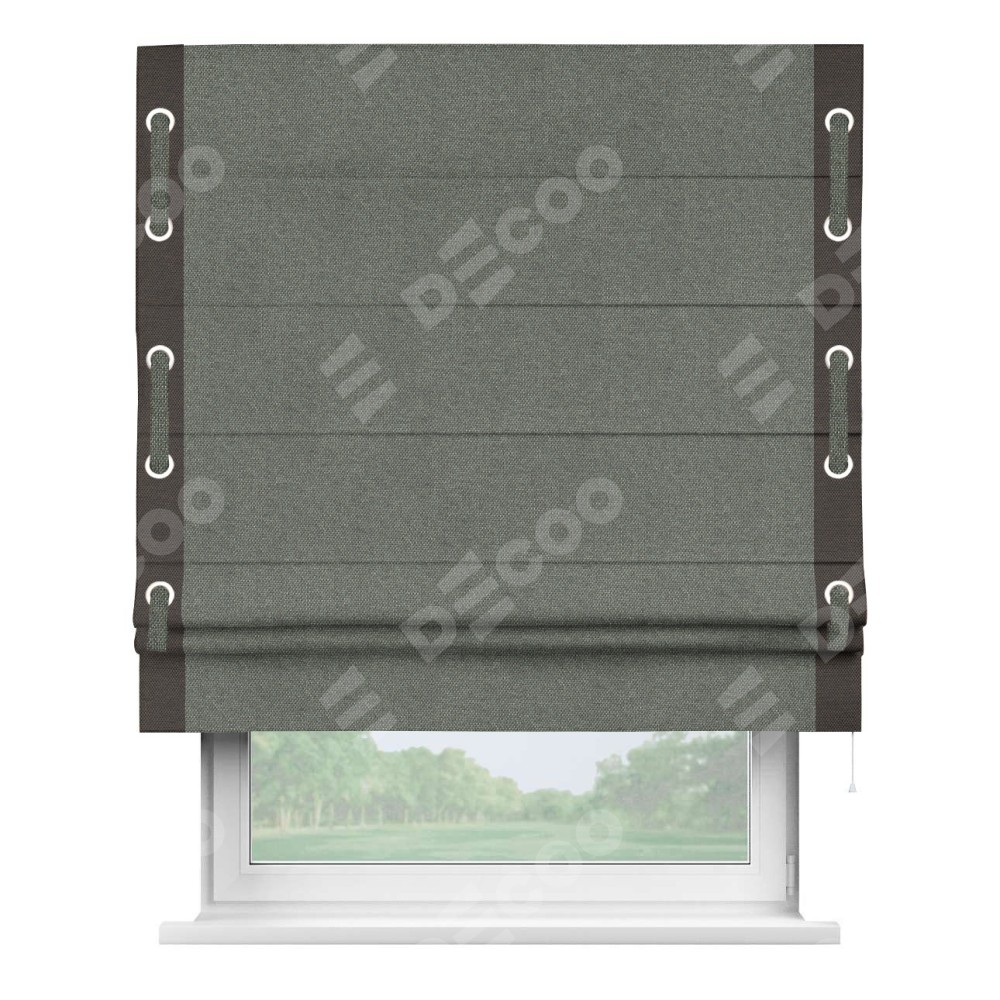Римская штора «Кортин» с кантом Стрим Дуо (люверсы с пояском), для проема, ткань лён димаут, тёмно-серый