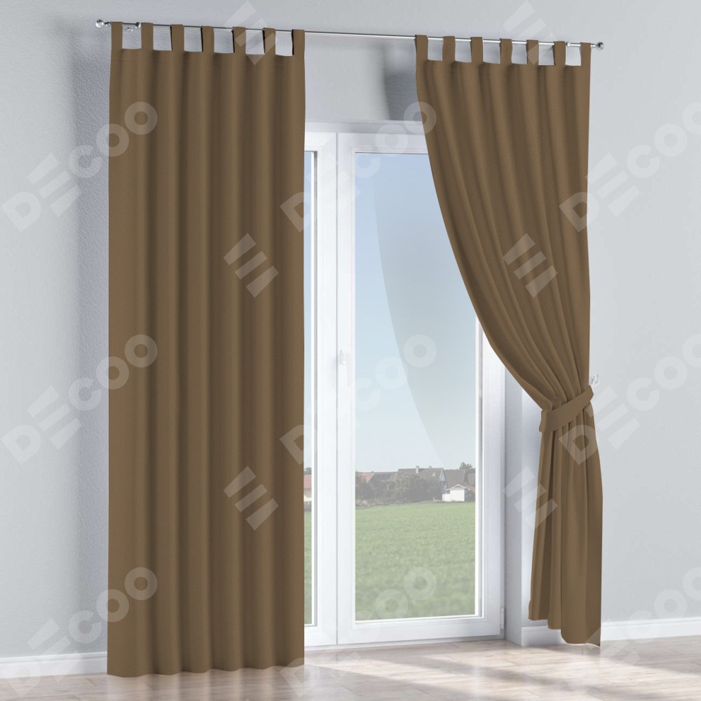 Комплект прямых штор, от производителя «Cortin», пошиты из ткани блэкаут однотонный коричневый, артикул ткани 91334. Данная модель пошита на петлях, комплектуется на выбор круглым карнизом и подходит для монтажа на стену или потолок. Прямые шторы на петлях шьются по стандарту с коэффициентом 1/2 (на 100 см. ширины проёма 200 см. ширины ткани), отличительным преимуществом данной модели является простой способ монтажа. Достаточно повесить ее на трубу и штора готова!