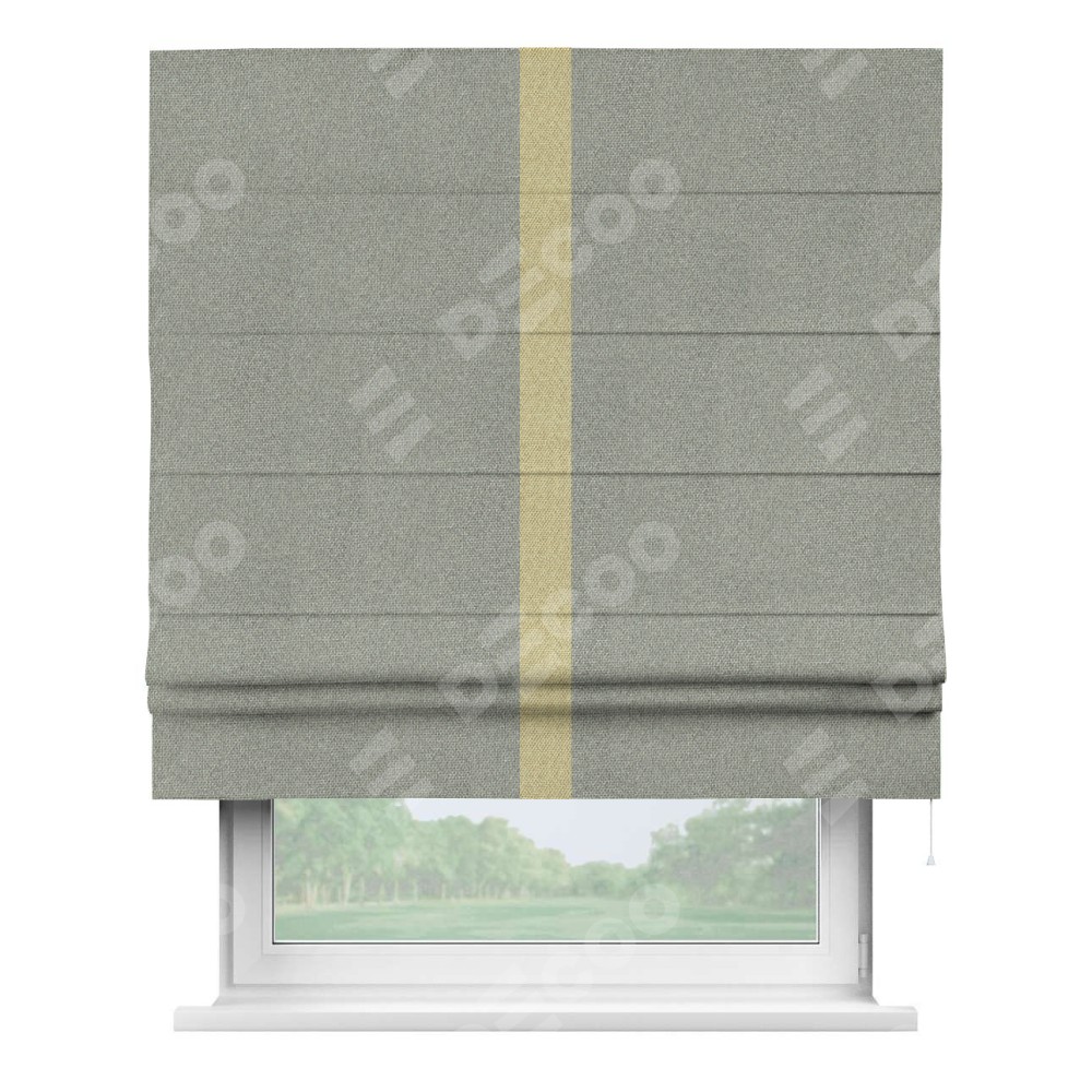 Римская штора «Кортин» для проема, лён димаут серый с кантом Хайвэй