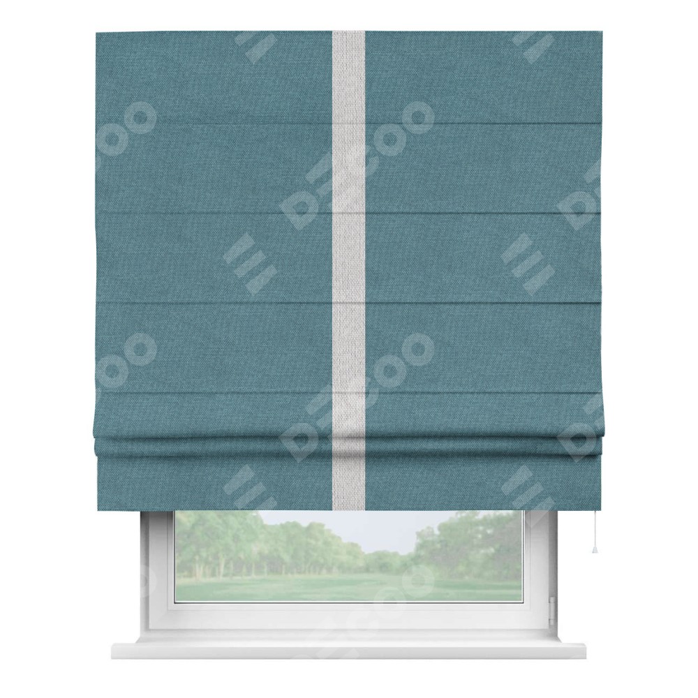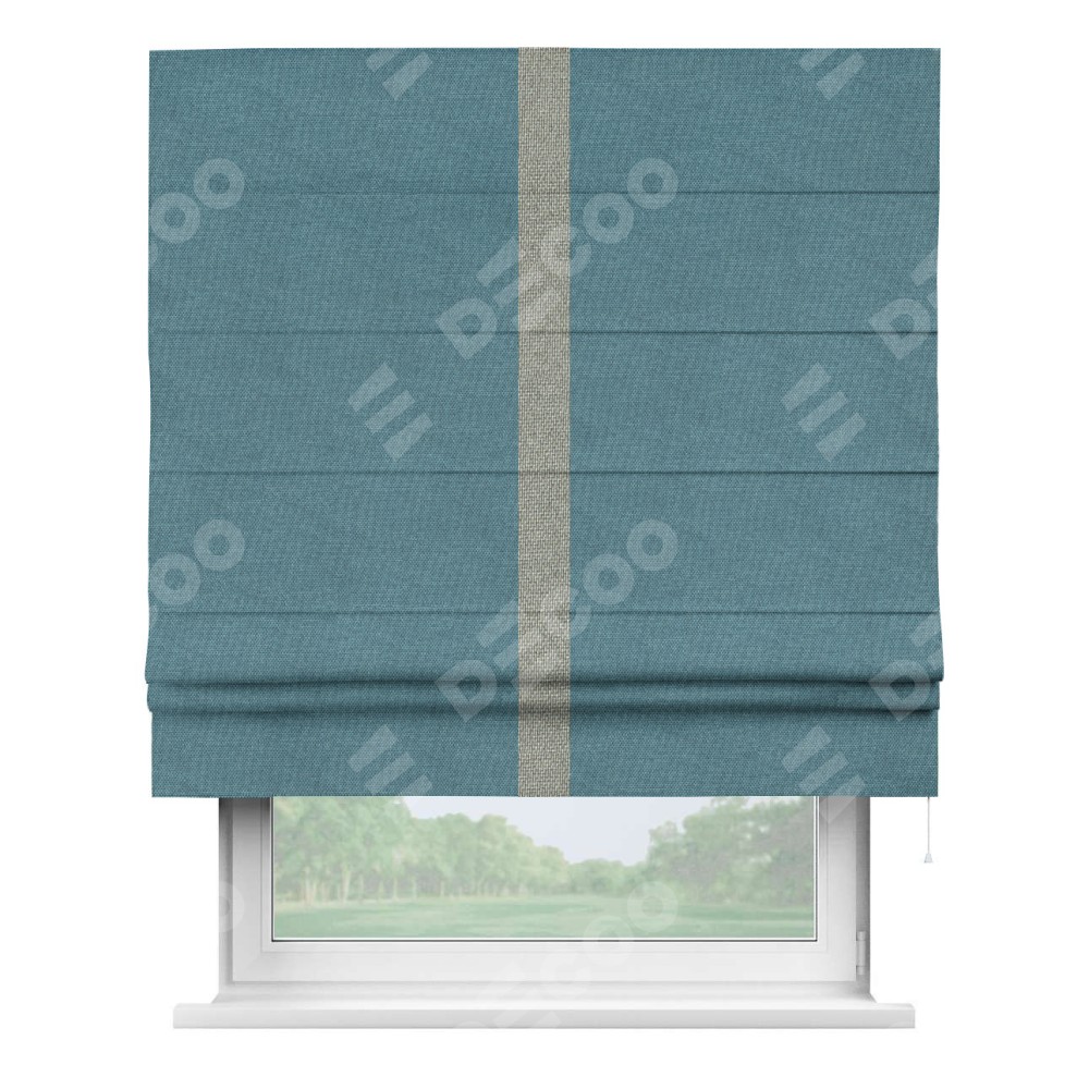 Римская штора «Кортин» для проема, лён димаут светло-синий с кантом Хайвэй