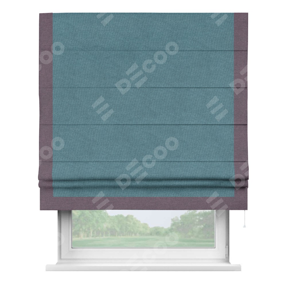 Римская штора «Кортин» для проема, лён димаут светло-синий с кантом Виктория