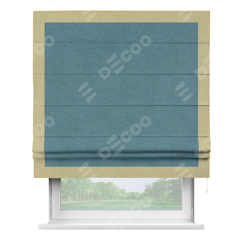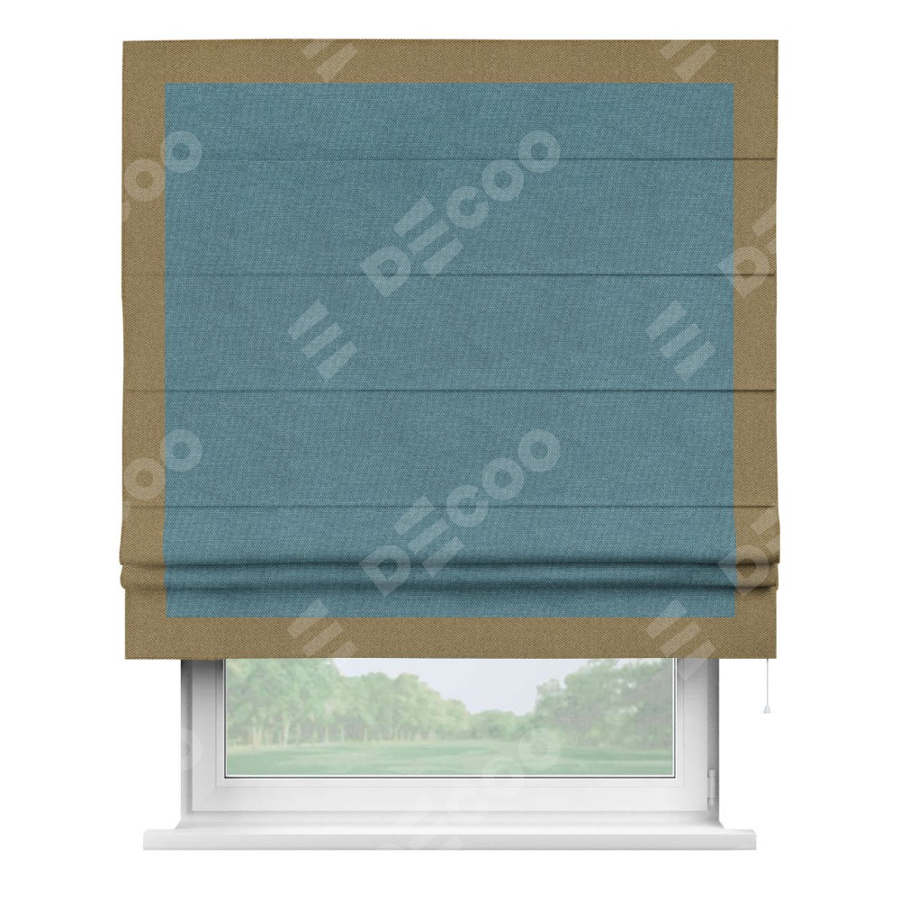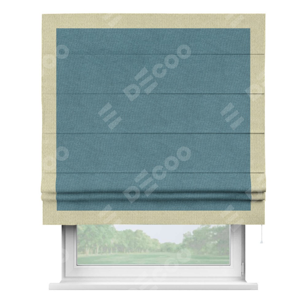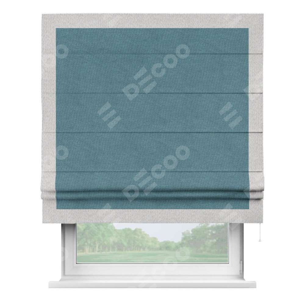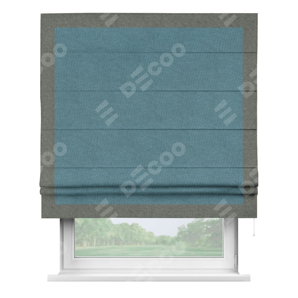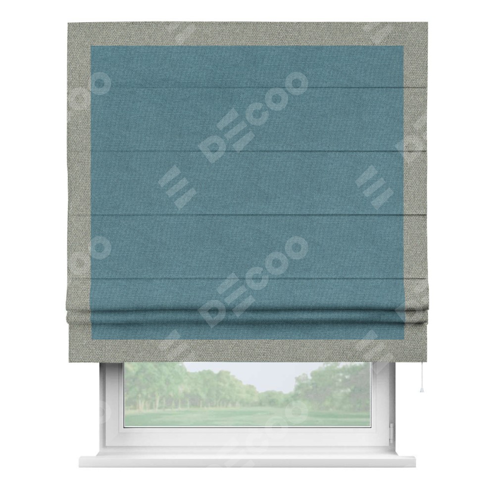 Римская штора «Кортин» для проема, лён димаут светло-синий с кантом Чесс