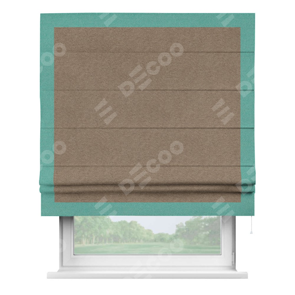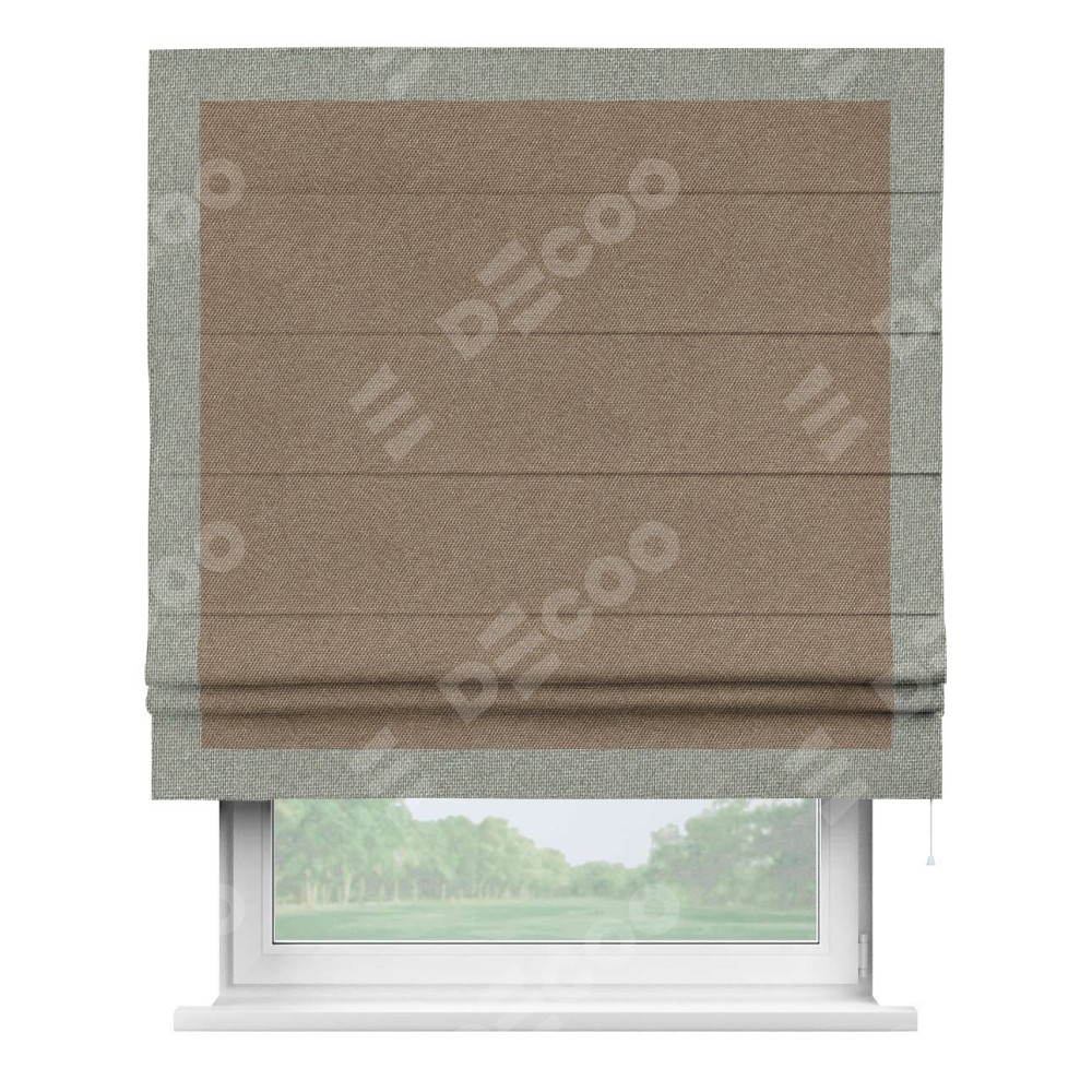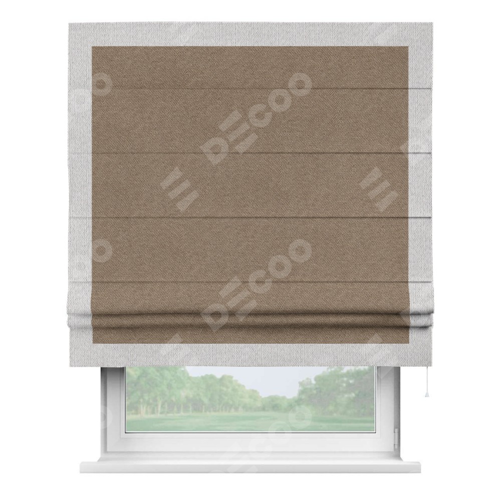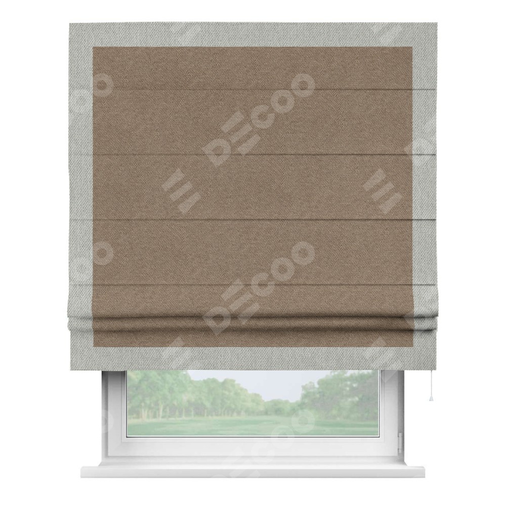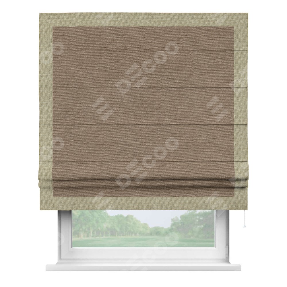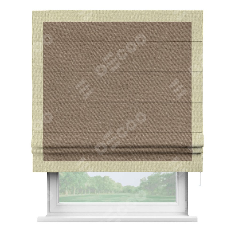 Римская штора «Кортин» для проема, лён димаут коричневый с кантом Чесс
