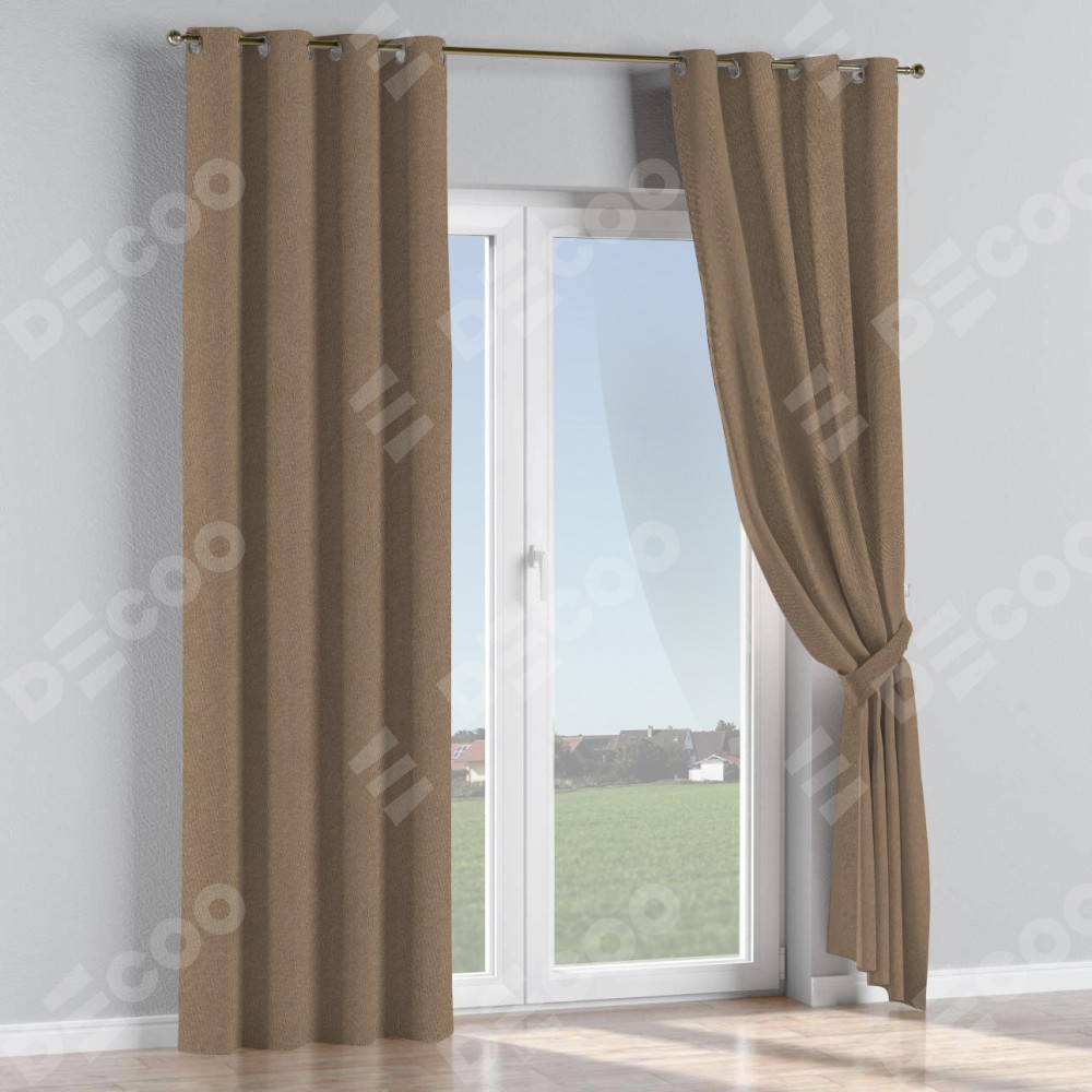 Комплект прямых штор, от производителя «Cortin», пошиты из ткани лён димаут коричневый, артикул ткани 90996. Данная модель пошита на люверсах, комплектуется на выбор круглым карнизом и подходит для монтажа на стену или потолок. Прямые шторы на люверсах шьются по стандарту с коэффициентом 1/2 (на 100 см. ширины проёма 200 см. ширины ткани), отличительным преимуществом данной модели является простой способ монтажа. Достаточно повесить ее на трубу и штора готова!