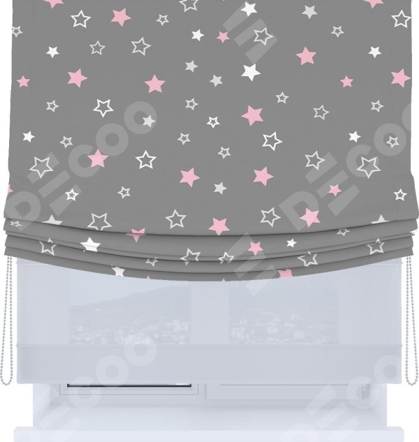 Римская штора «Кортин», день-ночь с мягкими складками, «Розовый звездопад»