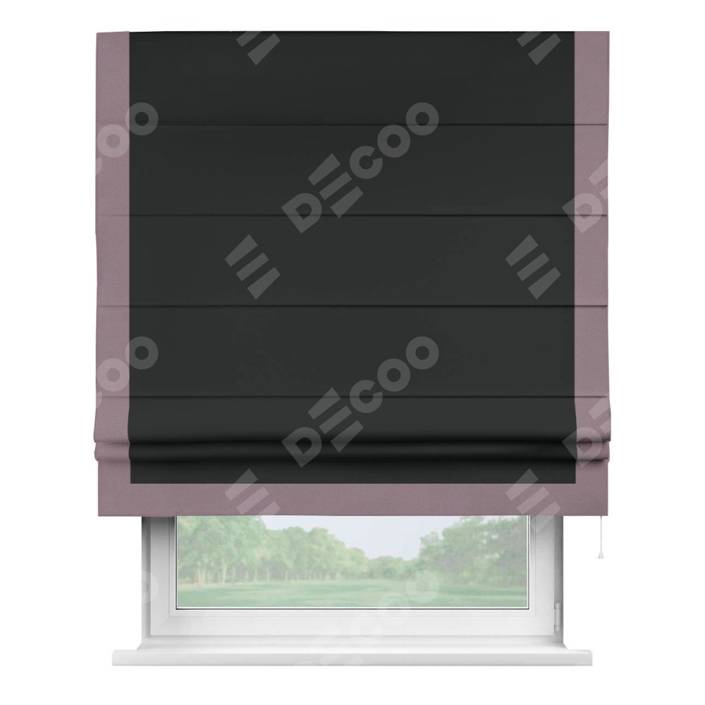 Римская штора производителя «Cortin», используется для проёма, пошита из ткани блэкаут однотонный черный, артикул ткани 91571−2. Отделка шторы кантом «Виктория», ткань для канта используется из блэкаута однотонного разной расцветки на выбор. Имеет универсальный механизм и подходит для монтажа: на потолок, на стену и в нишу.