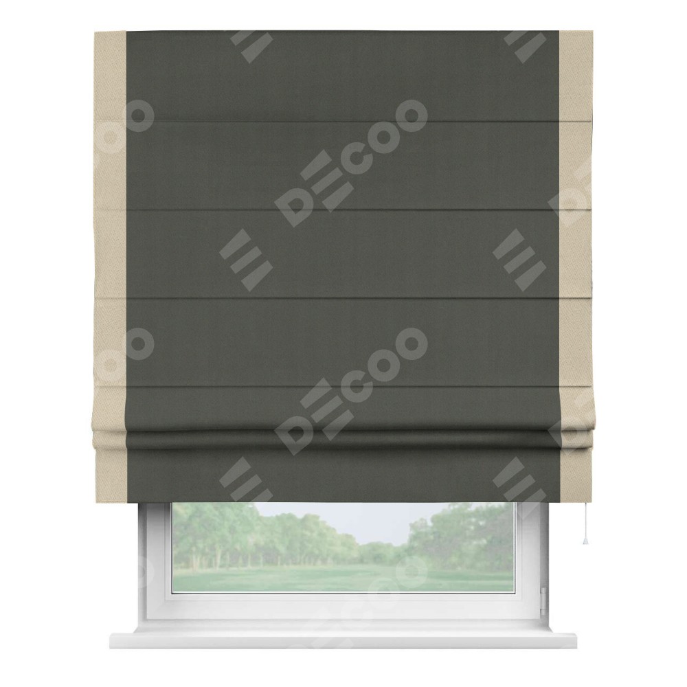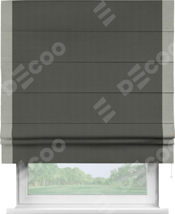 Римская штора «Кортин» для проема, блэкаут однотонный дымчато-серый с кантом Стрим Дуо