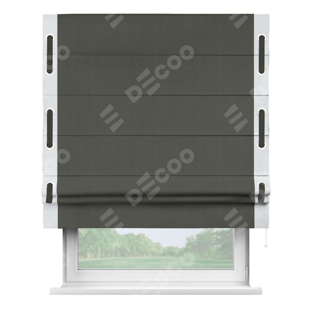 Римская штора «Кортин» для проема, блэкаут однотонный дымчато-серый с кантом Стрим Дуо (люверсы с пояском)
