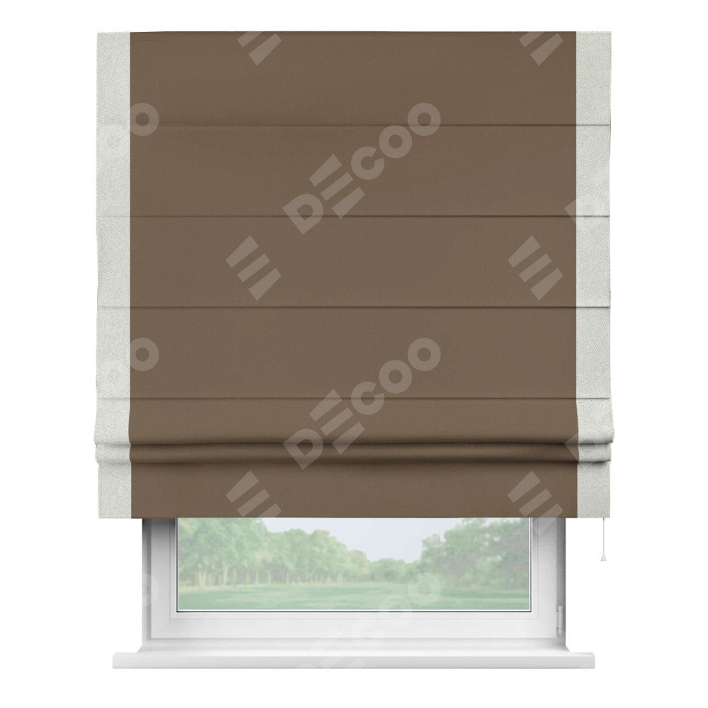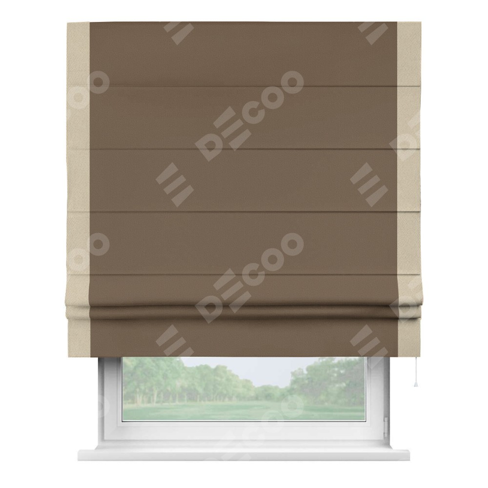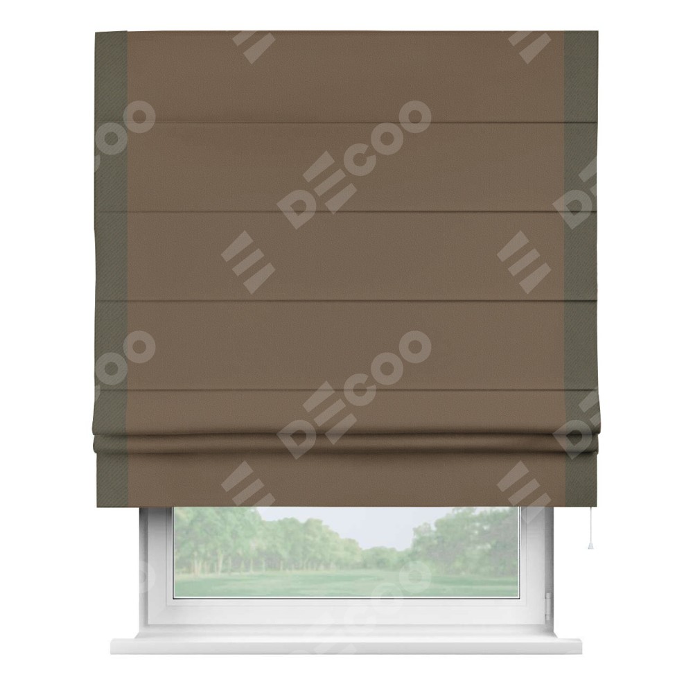 Римская штора «Кортин» для проема, блэкаут однотонный коричневый с кантом Стрим Дуо
