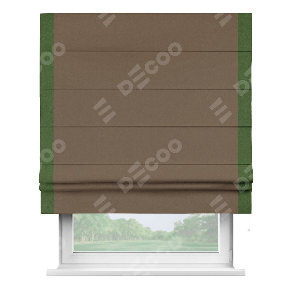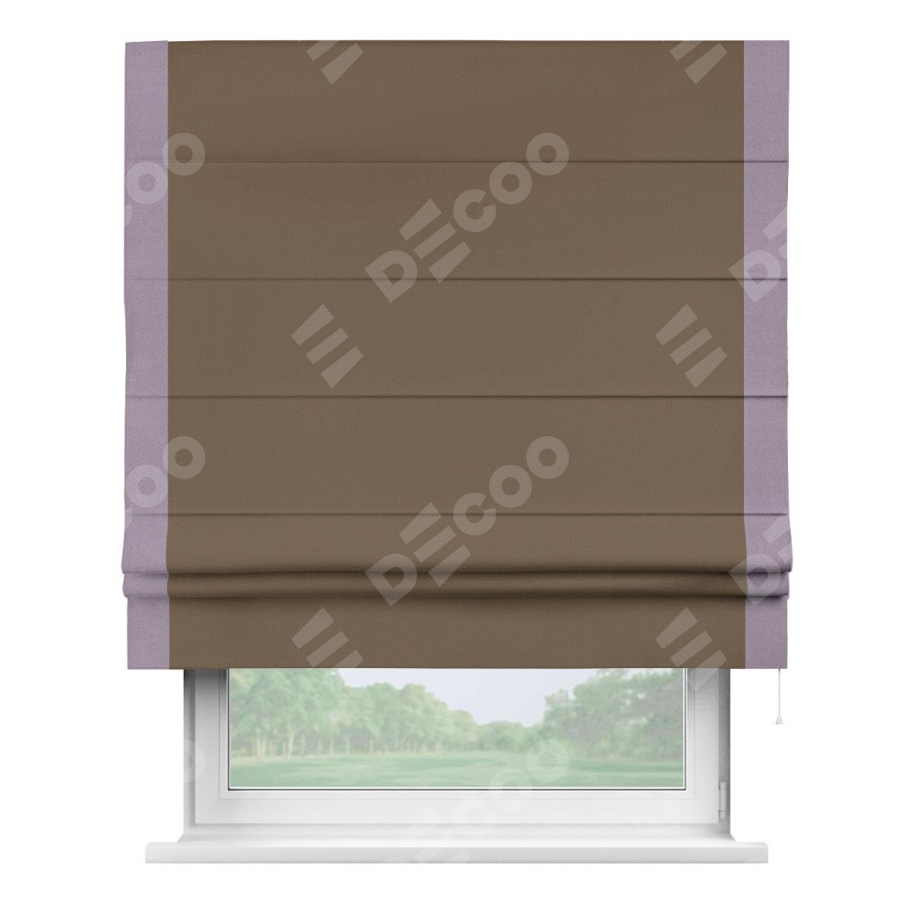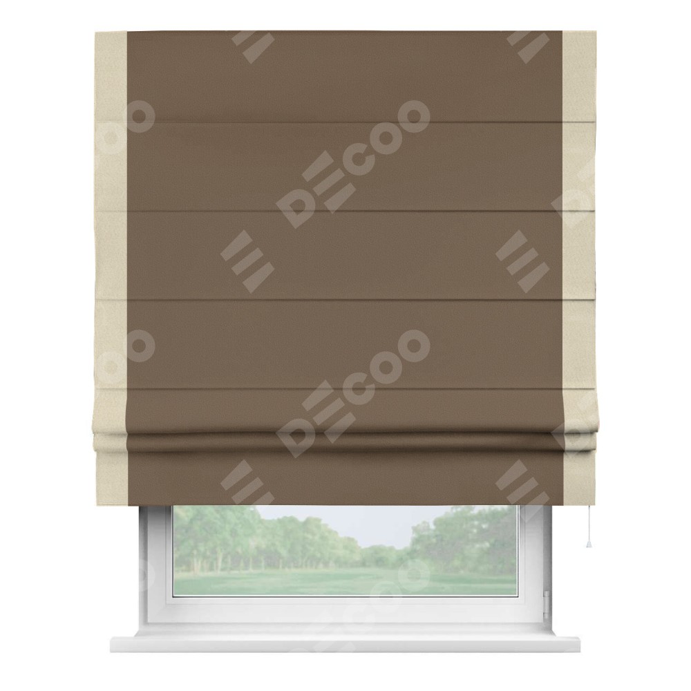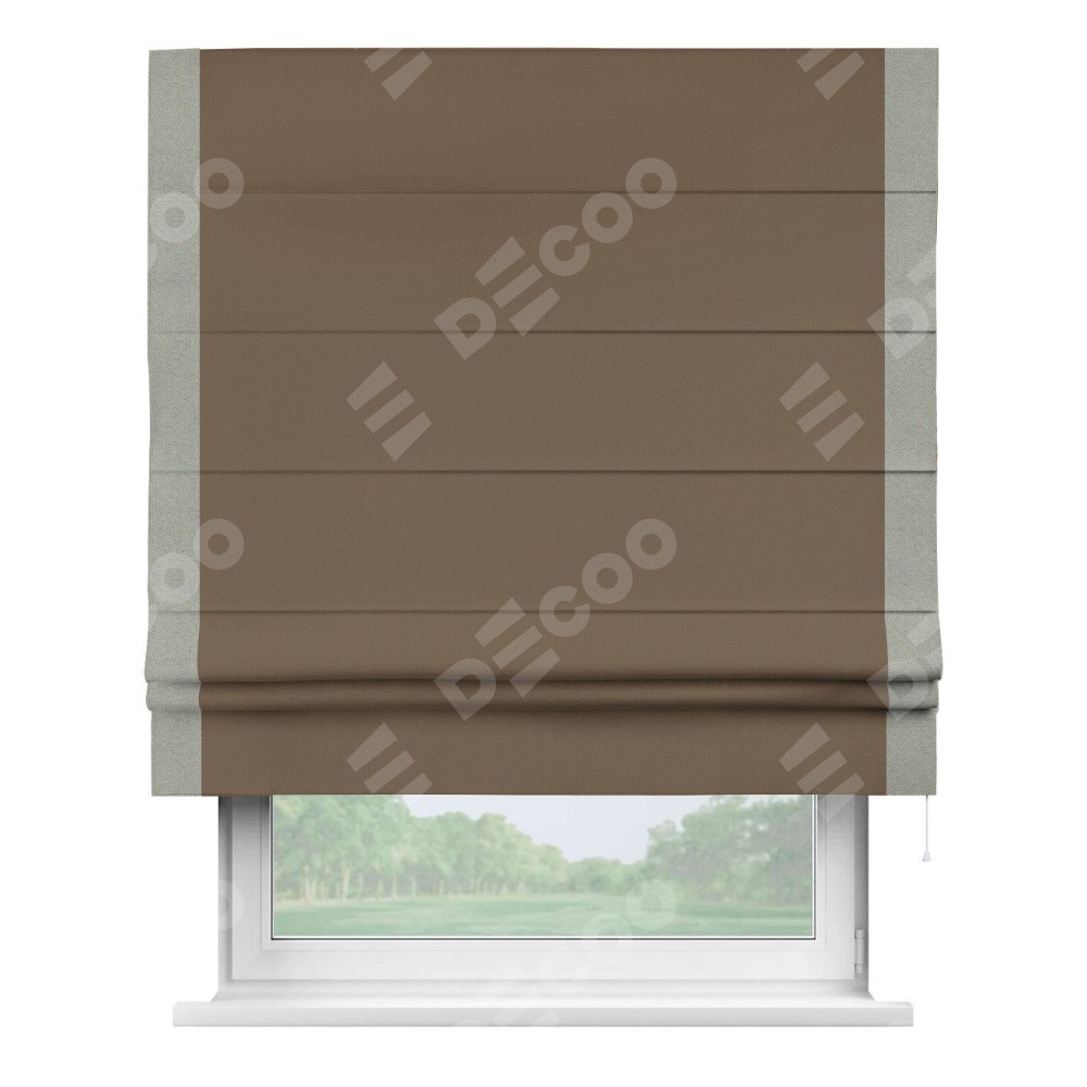 Римская штора «Кортин» для проема, блэкаут однотонный коричневый с кантом Стрим Дуо