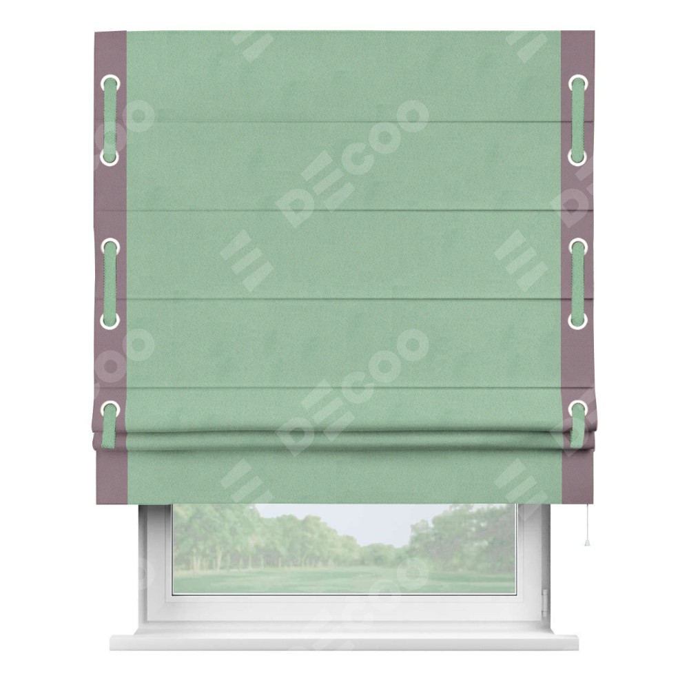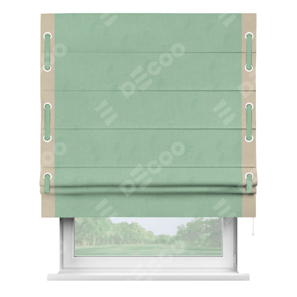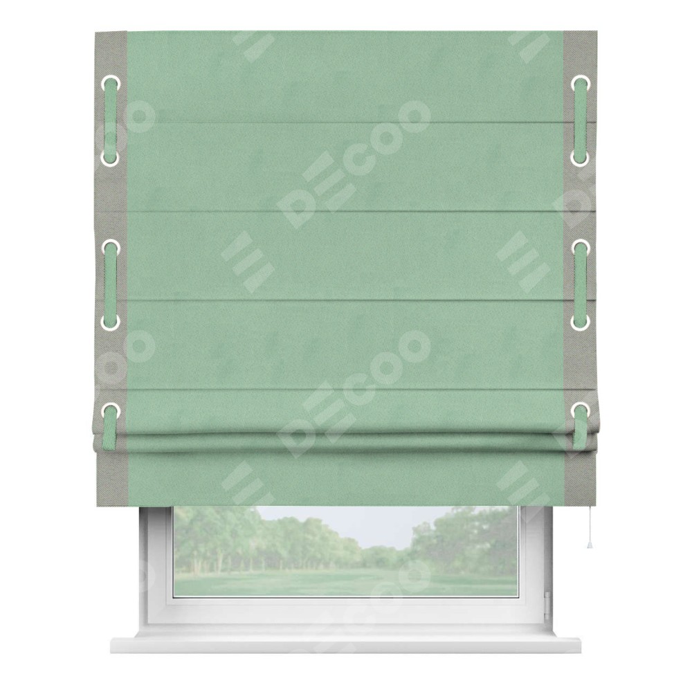 Римская штора «Кортин» для проема, блэкаут однотонный ментоловый с кантом Стрим Дуо (люверсы с пояском)