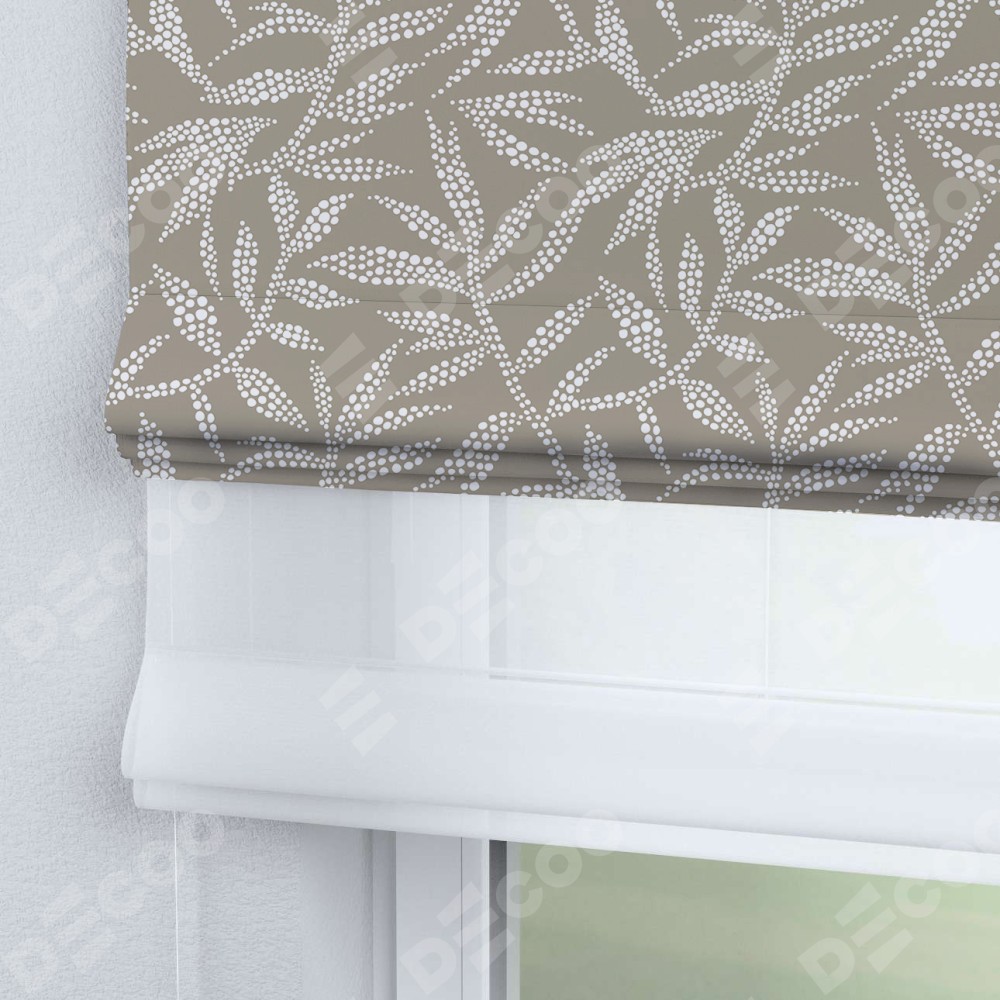 Двойная римская штора «День-ночь» от производителя Cortin предназначена для использования в проёмах. Эта штора уникальна тем, что состоит из двух полотен. На лицевой стороне находится блэкаут с нанесением сублимационной печати «Бежевая иллюзия», обеспечивающий эффективное затемнение. В комплект также входит вторая ткань — легкий белый тюль (артикул: V-01), который добавляет изящества и легкости оформлению окна. Кроме того, доступны и другие разновидности ткани тюль, выбор которых доступен по ссылке .