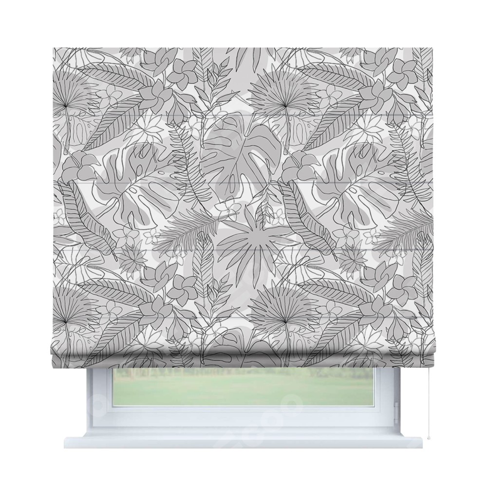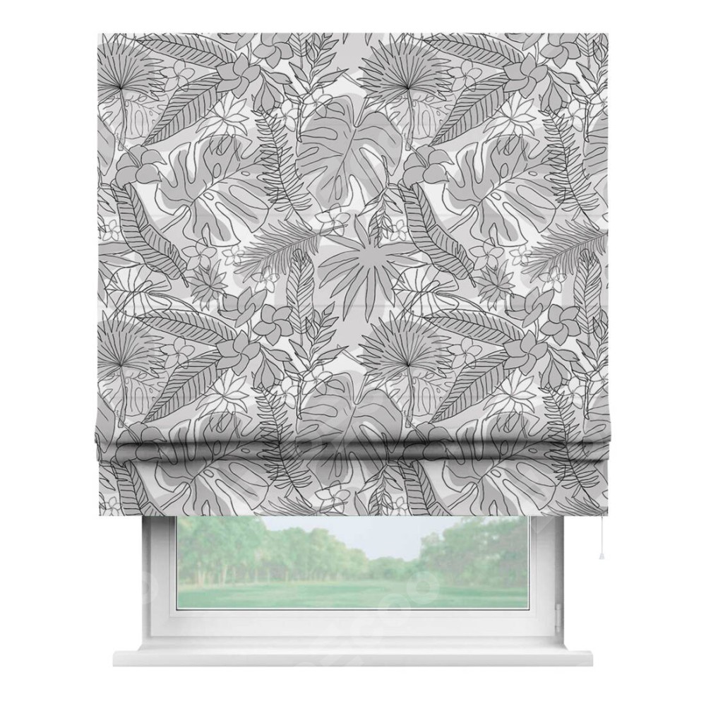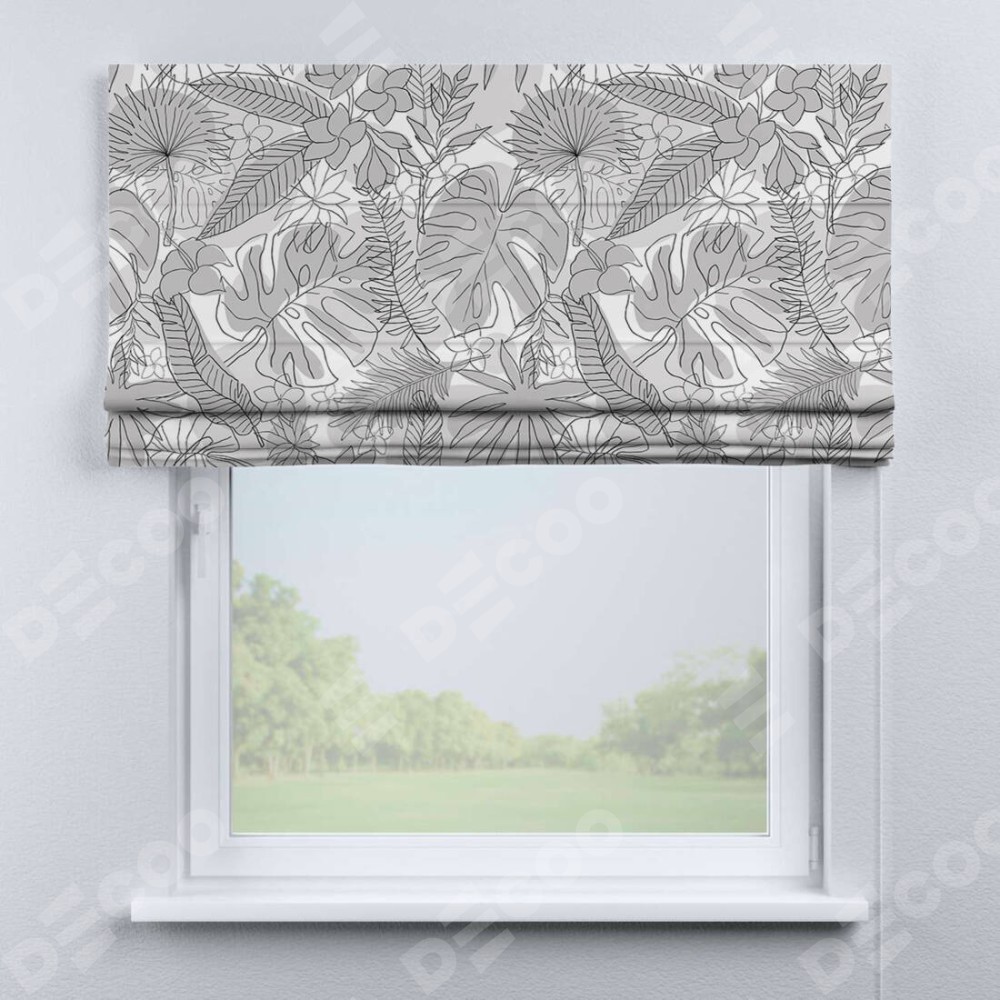 Классическая римская штора производителя «Cortin», пошита из ткани блэкаут с нанесением сублимационной печати «Тропический лес». Имеет универсальный механизм и подходит для монтажа: на потолок, на стену и в нишу.