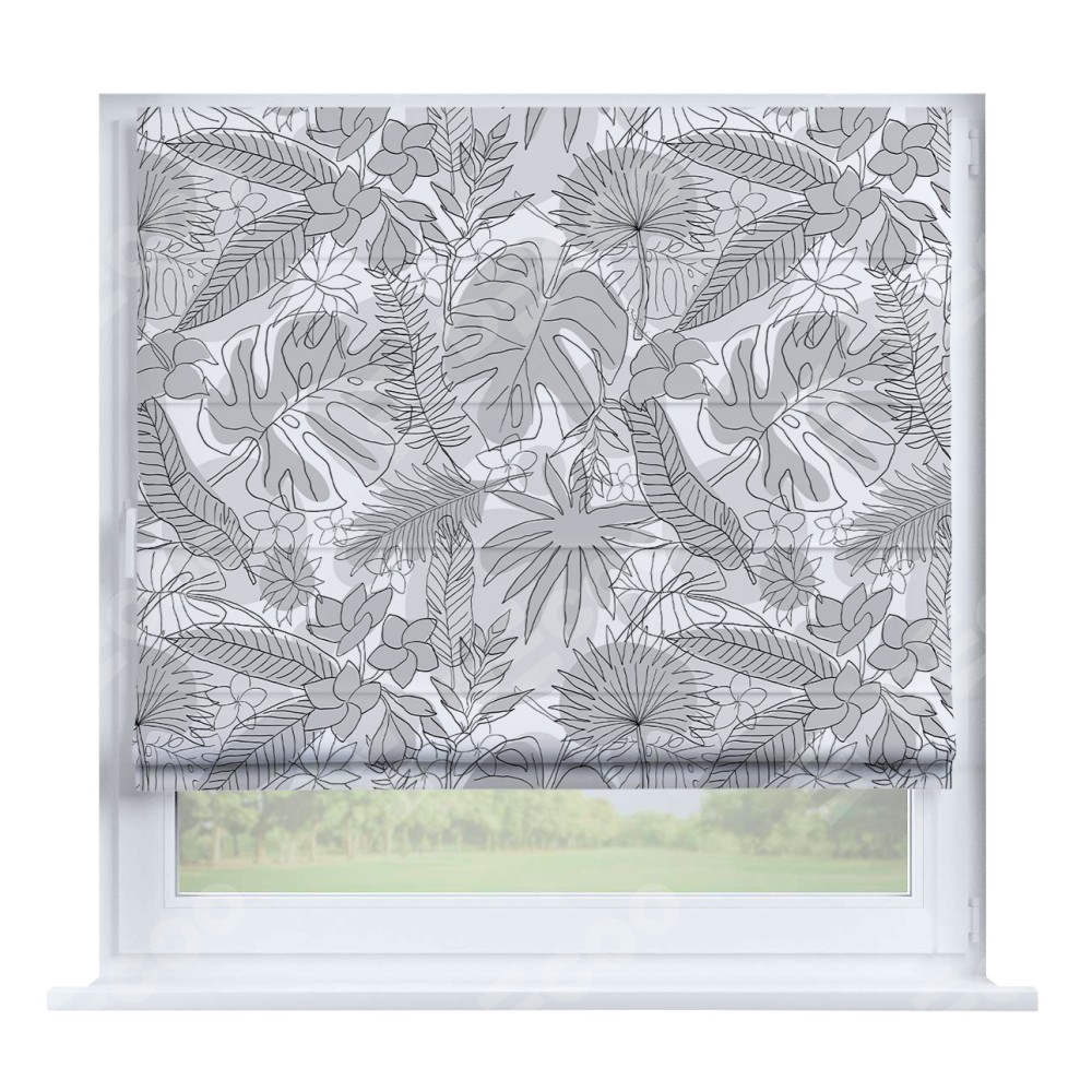 Римская штора производителя «Cortin», устанавливается на створку окна, пошита из ткани блэкаут с нанесением сублимационной печати «Тропический лес». Штора шьётся по индивидуальным размерам, для данного типа римской шторы возможная ширина от 35 до 150 см., высота до 250 см.