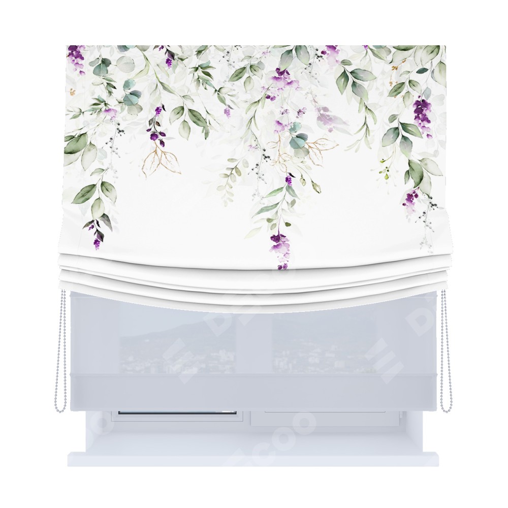 Римская штора «Кортин», день-ночь с мягкими складками, «Цветочный водопад»