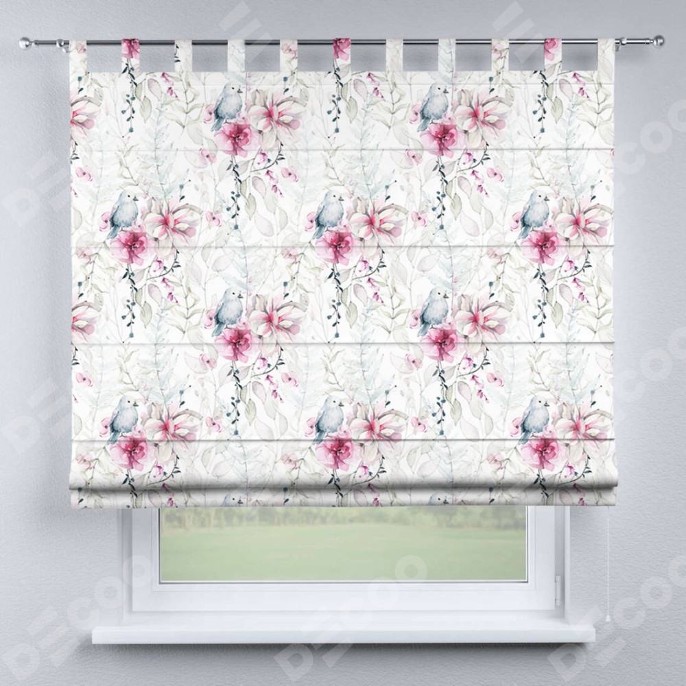 Римская штора производителя «Cortin», используется для проёма, пошита из ткани блэкаут с нанесением сублимационной печати «Мелодия цветов». Данная модель пошита на петлях, комплектуется на выбор круглым карнизом и подходит для монтажа на стену. Римская штора на петлях имеет простую систему регулировки высоты, отличительным преимуществом данной модели является простой способ монтажа. Достаточно повесить ее на трубу и штора готова!