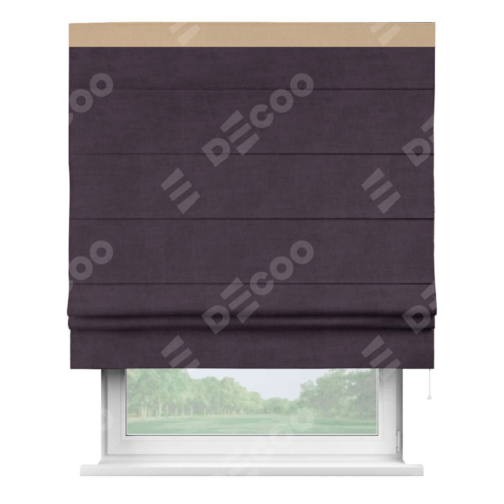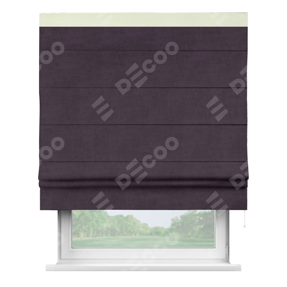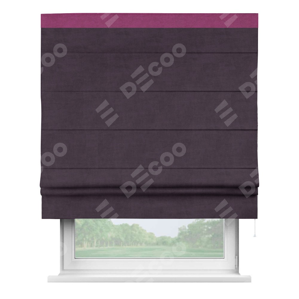 Римская штора «Кортин» для проема, вельвет тёмно-фиолетовый с кантом Кинг