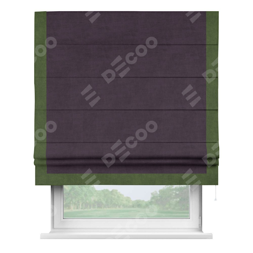 Римская штора «Кортин» для проема, вельвет тёмно-фиолетовый с кантом Виктория