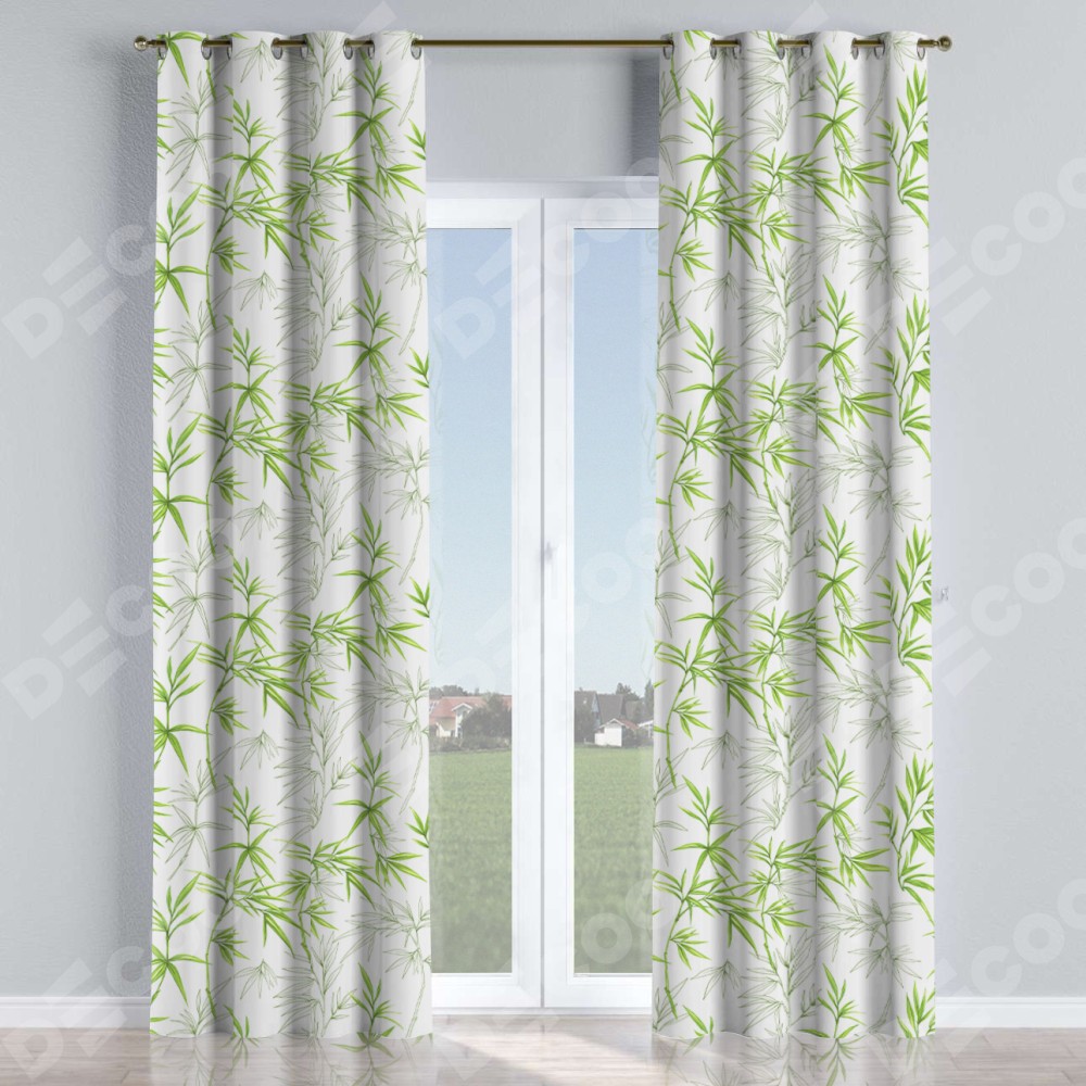 Комплект прямых штор, от производителя «Cortin», пошиты из ткани блэкаут с нанесением сублимационной печати «Зелёный бамбук». Данная модель пошита на люверсах, комплектуется на выбор круглым карнизом и подходит для монтажа на стену или потолок. Прямые шторы на люверсах шьются по стандарту с коэффициентом 1/2 (на 100 см. ширины проёма 200 см. ширины ткани), отличительным преимуществом данной модели является простой способ монтажа. Достаточно повесить ее на трубу и штора готова!