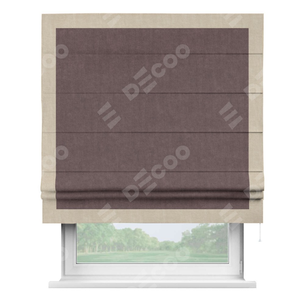 Римская штора «Кортин» для проема, канвас махагон, с кантом Чесс