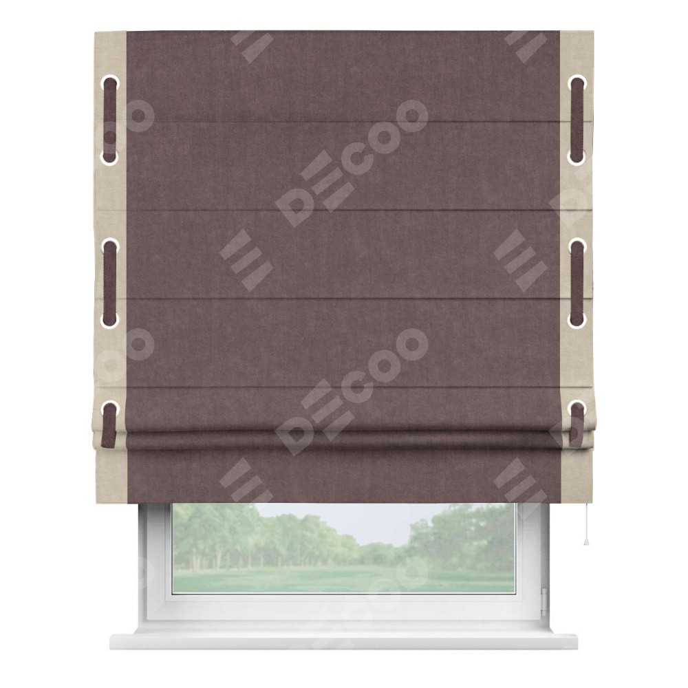 Римская штора «Кортин» для проема, канвас махагон, с кантом Стрим Дуо (люверсы с пояском)