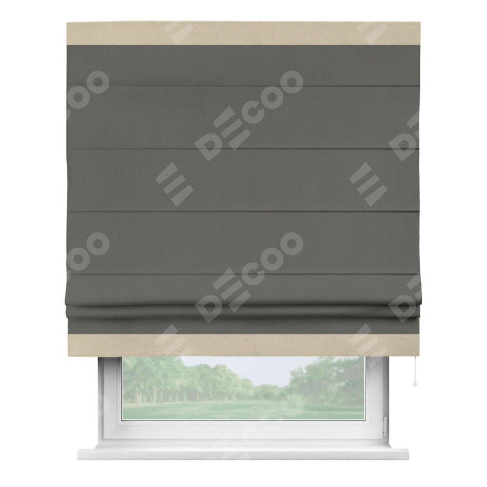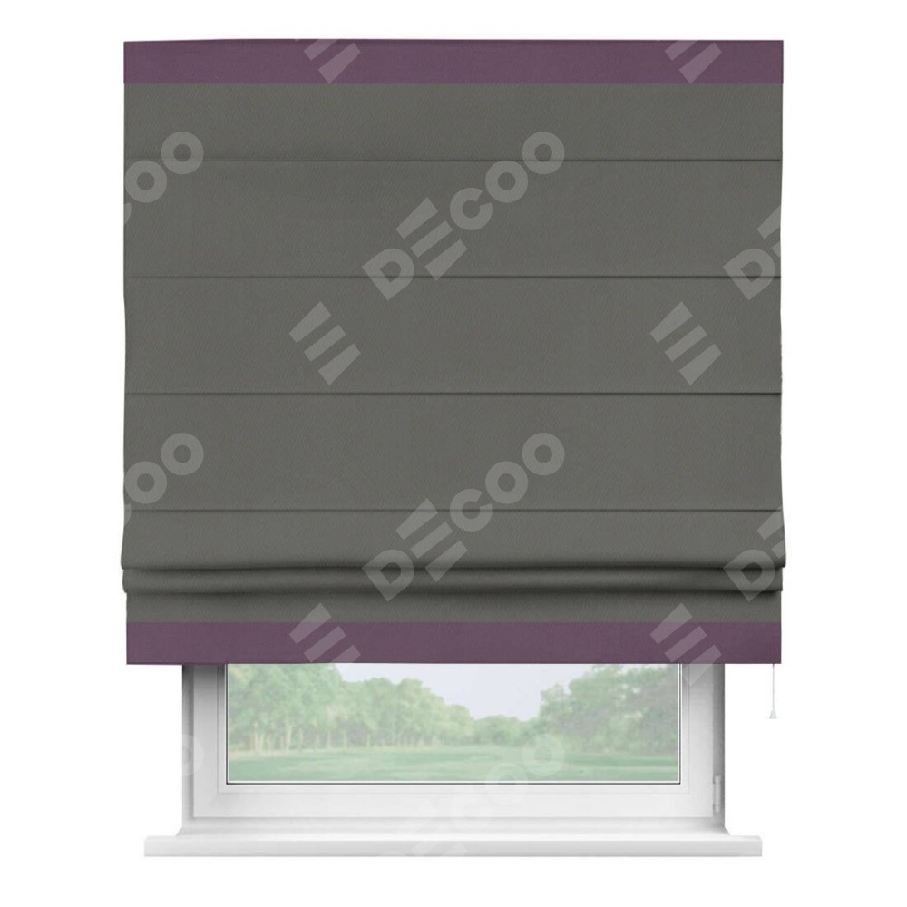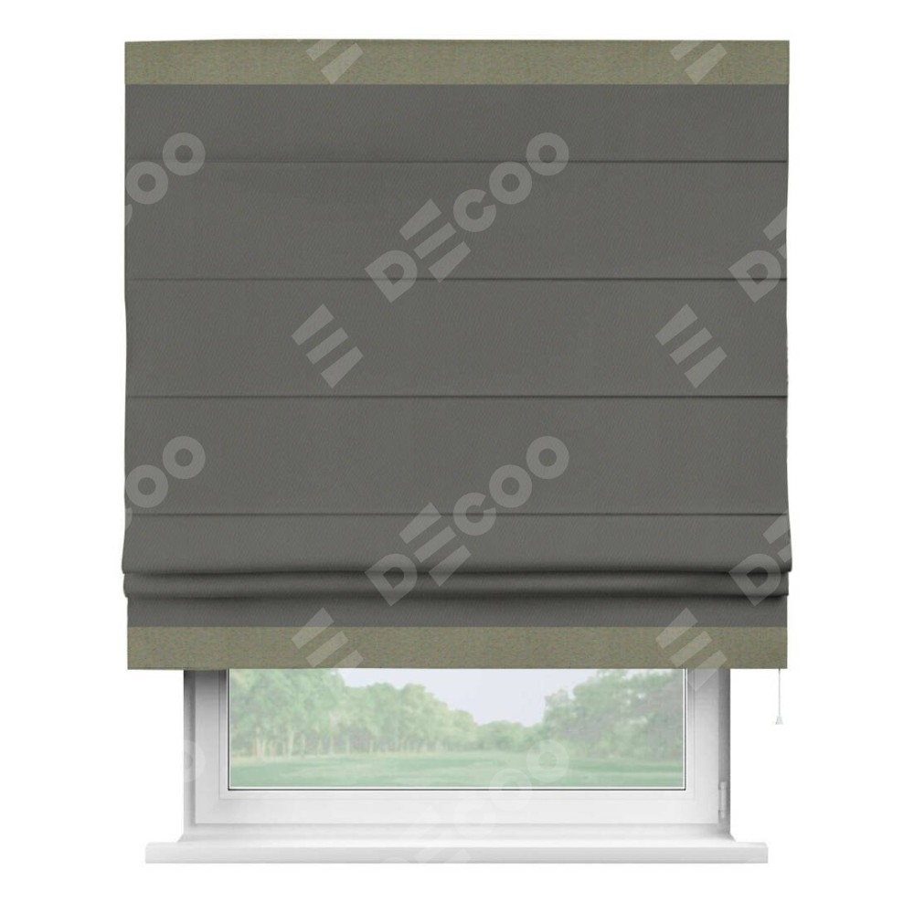 Римская штора «Кортин» для проема, блэкаут однотонный тёмно-серый с кантом Горизонт