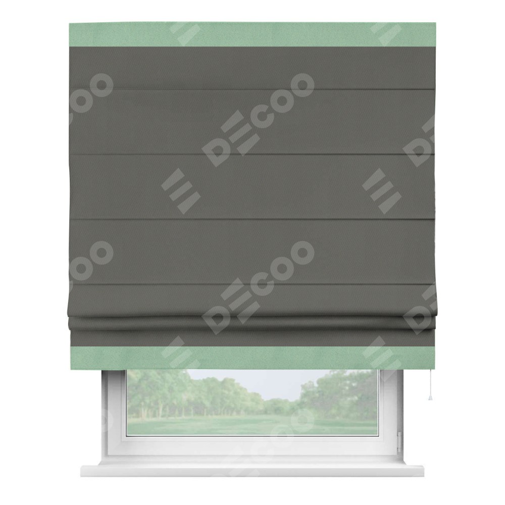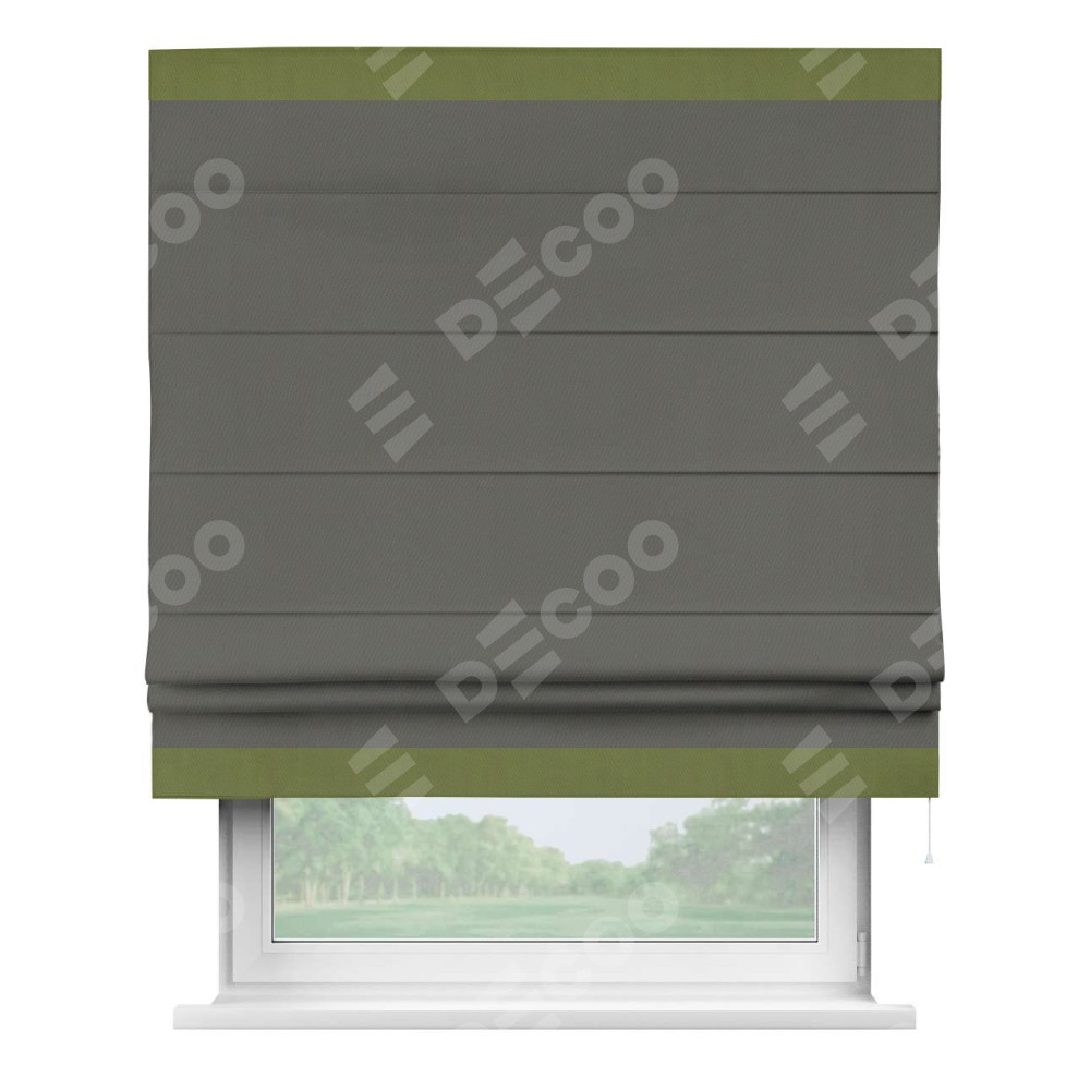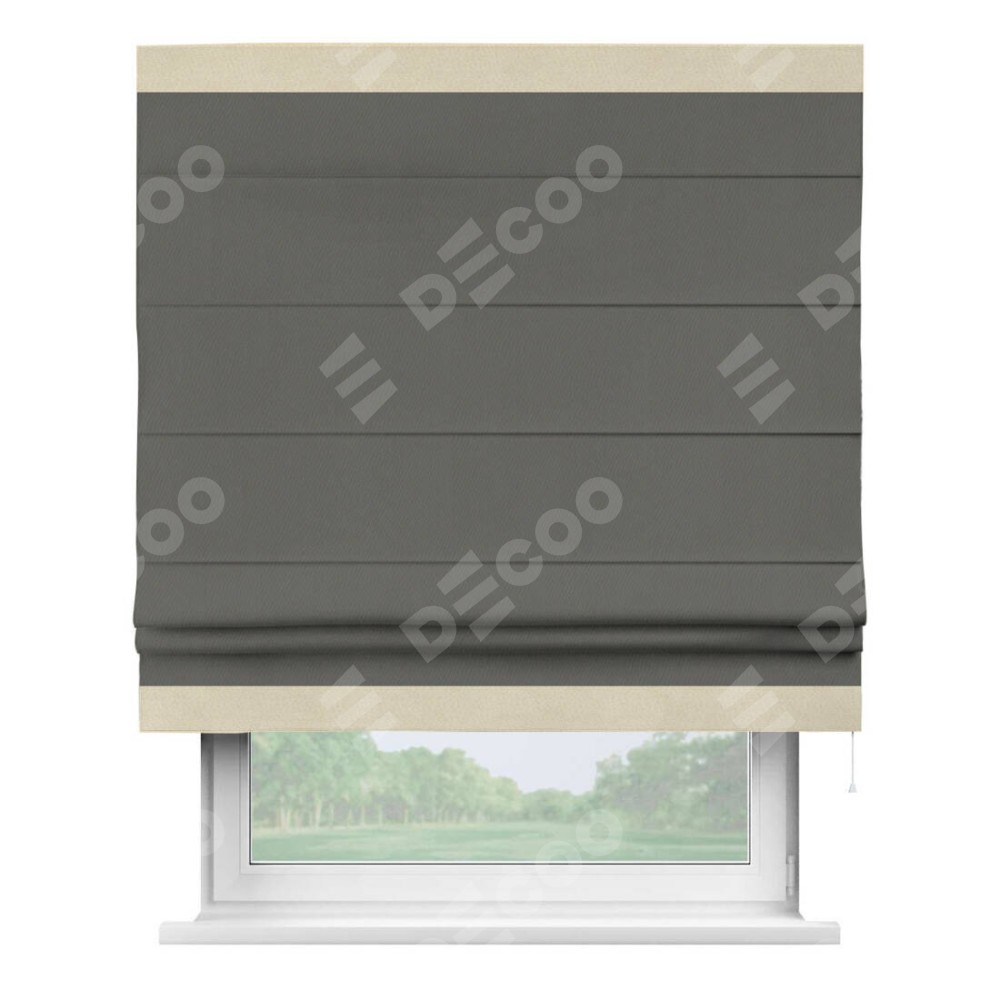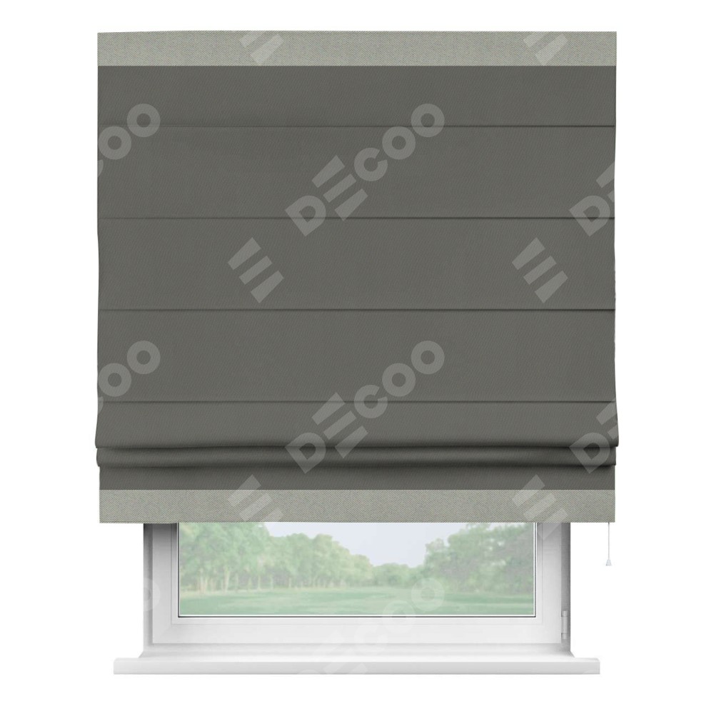Римская штора «Кортин» для проема, блэкаут однотонный тёмно-серый с кантом Горизонт
