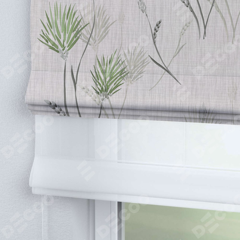 Двойная римская штора «День-ночь» от производителя Cortin предназначена для использования в проёмах. Эта штора уникальна тем, что состоит из двух полотен. На лицевой стороне находится блэкаут с нанесением сублимационной печати «Полевые травы бежевый», обеспечивающий эффективное затемнение. В комплект также входит вторая ткань — легкий белый тюль (артикул: V-01), который добавляет изящества и легкости оформлению окна. Кроме того, доступны и другие разновидности ткани тюль, выбор которых доступен по ссылке .