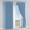 Комплект прямых штор, от производителя «Cortin», пошиты из ткани канвас голубой, артикул ткани 92729. Данная модель пошита на петлях, комплектуется на выбор круглым карнизом и подходит для монтажа на стену или потолок. Прямые шторы на петлях шьются по стандарту с коэффициентом 1/2 (на 100 см. ширины проёма 200 см. ширины ткани), отличительным преимуществом данной модели является простой способ монтажа. Достаточно повесить ее на трубу и штора готова!