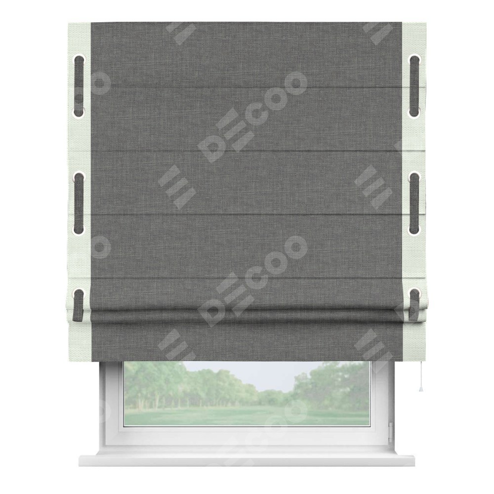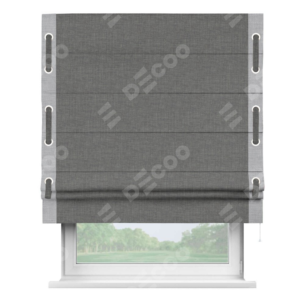 Римская штора «Кортин» с кантом Стрим Дуо (люверсы с пояском), для проема, лён тёмно-серый
