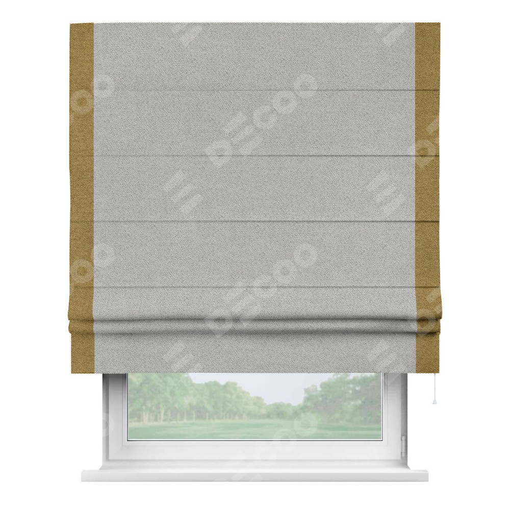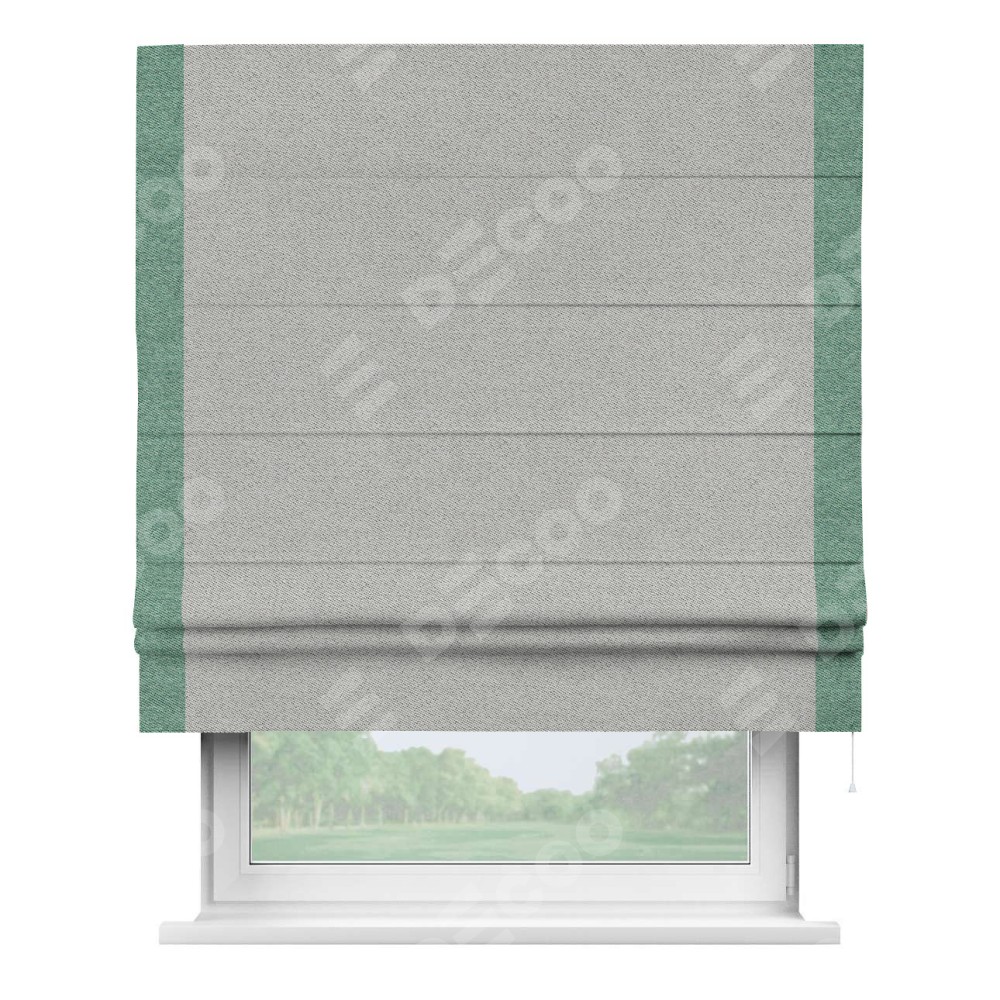 Римская штора «Кортин» для проема, твид блэкаут светло-серый, с кантом Стрим Дуо