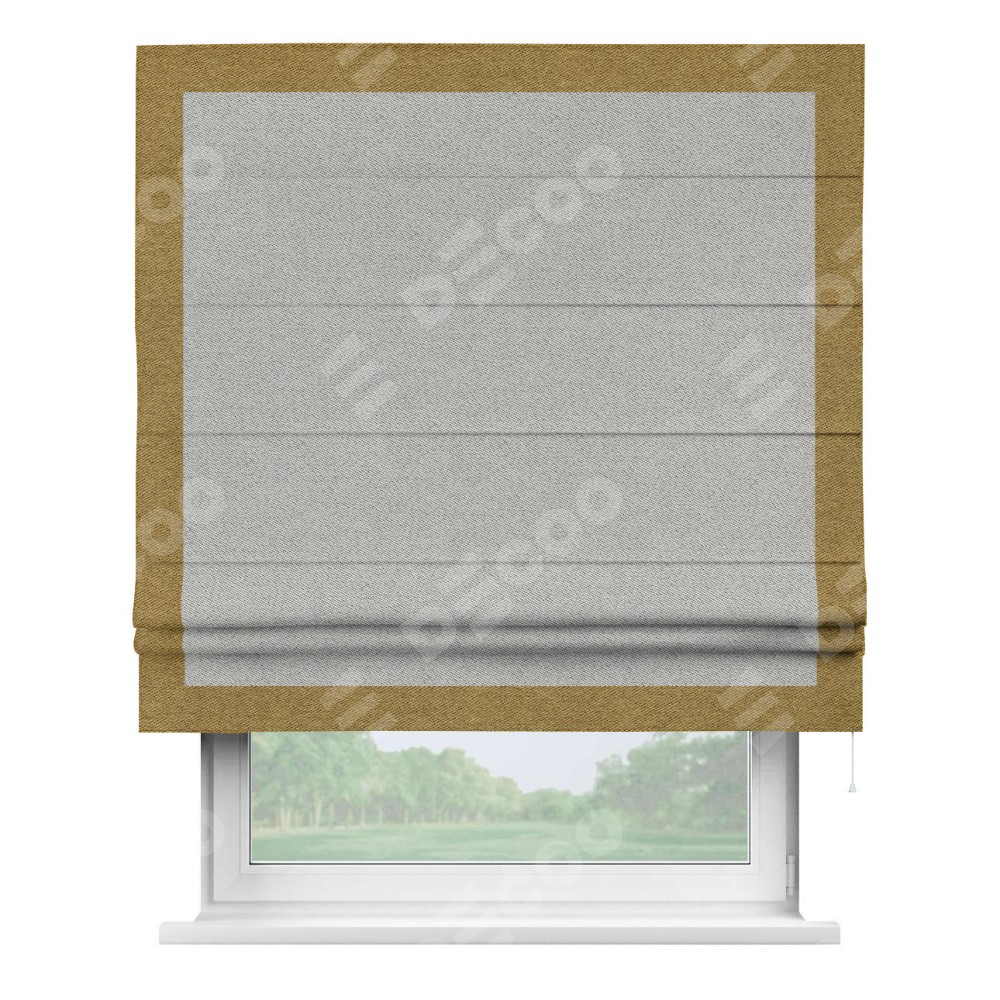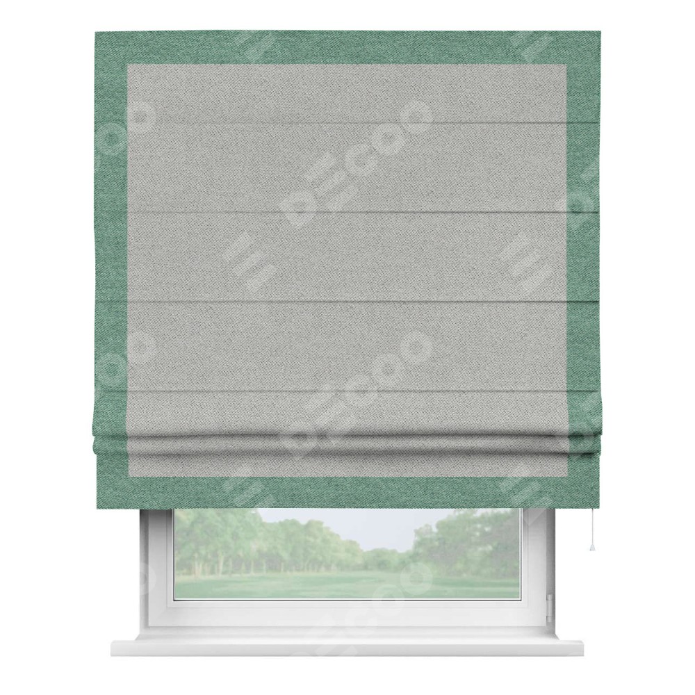 Римская штора производителя «Cortin», используется для проёма, пошита из ткани твид блэкаут светло-серый, артикул 90936. Отделка шторы кантом «Чесс», ткань для канта используется из твида разной расцветки на выбор. Имеет универсальный механизм и подходит для монтажа: на потолок, на стену и в нишу.