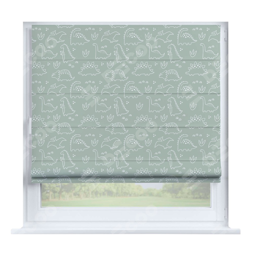Римская штора производителя «Cortin», устанавливается на створку окна, пошита из ткани блэкаут с нанесением сублимационной печати «Динопарк». Штора шьётся по индивидуальным размерам, для данного типа римской шторы возможная ширина от 35 до 150 см., высота до 250 см.