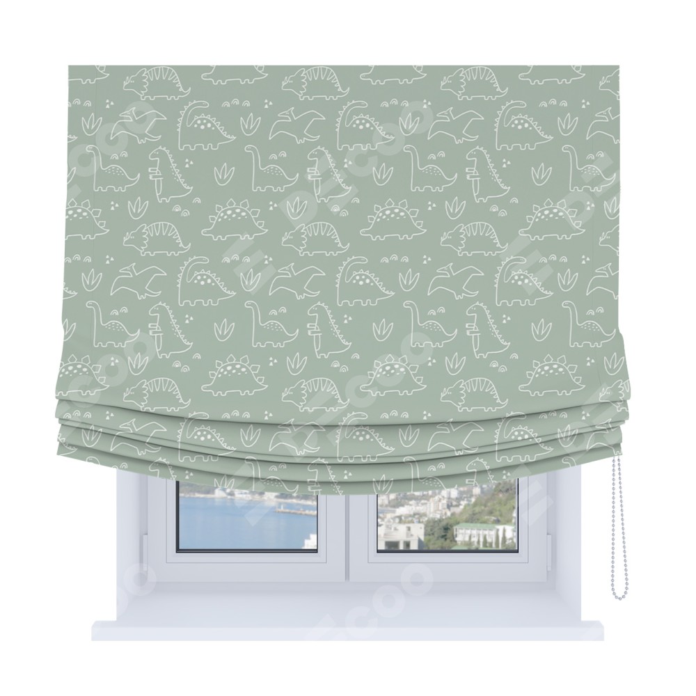 Римская штора Soft производителя «Cortin», используется для проёма, пошита из ткани блэкаут с нанесением сублимационной печати «Динопарк». Имеет универсальный механизм и подходит для монтажа: на потолок, на стену и в нишу. В отличие от стандартных римских штор, римская штора Soft не имеет горизонтальных вставок и нижнего отвеса. Это позволяет ткани произвольно драпироваться в свободные мягкие складки.