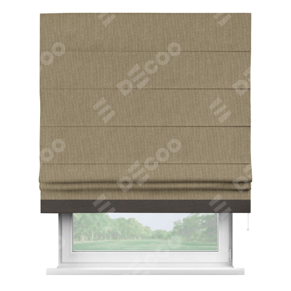 Римская штора «Кортин» для проема, лён димаут тёмно-бежевый с кантом Джестер